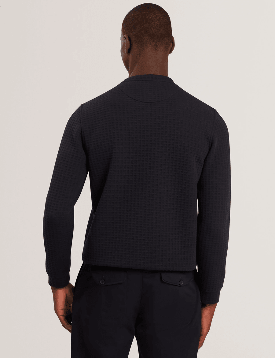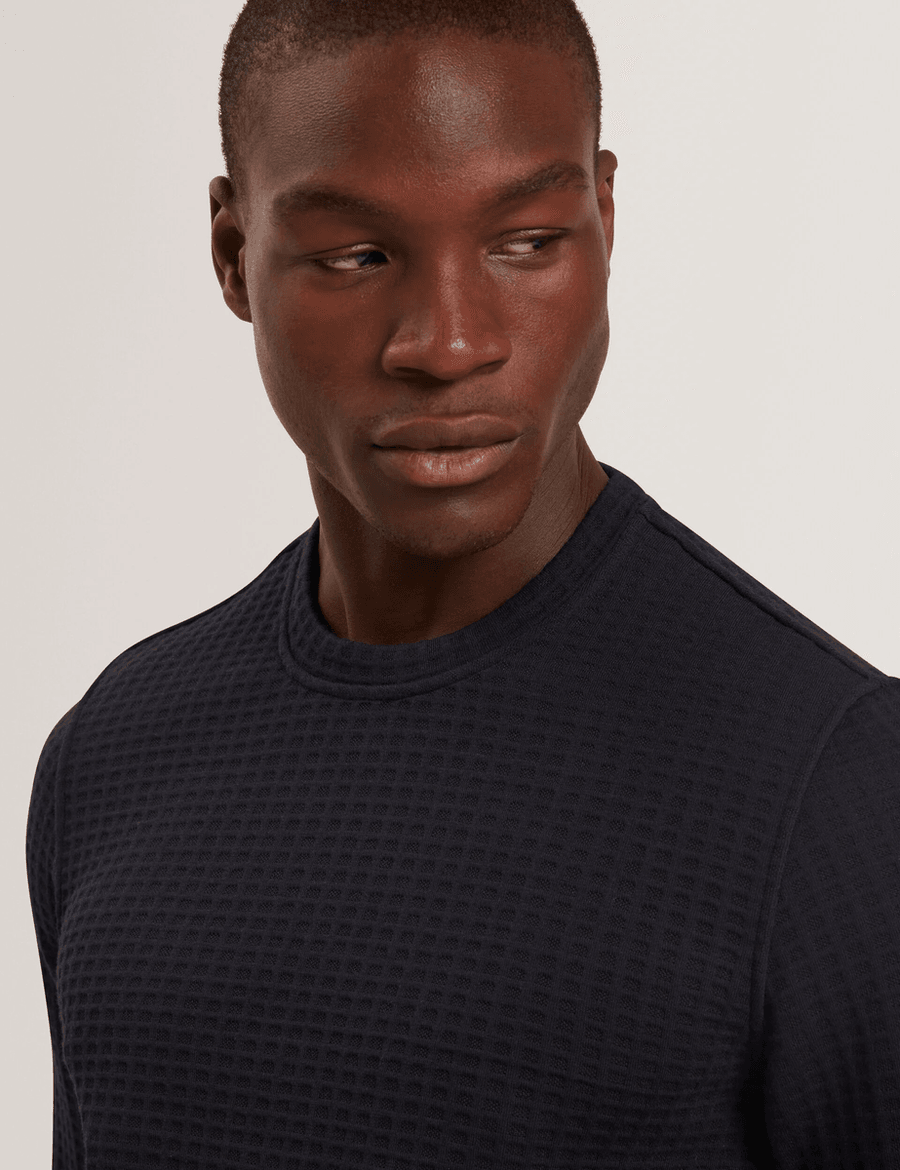 With its stylish waffle texture and cozy knit fabric, the Ted Baker ORLAITE | NAVY will quickly become your go-to choice for comfort and style. Pair it with jeans for a laid-back look or dress it up with chinos for a more polished appearance.