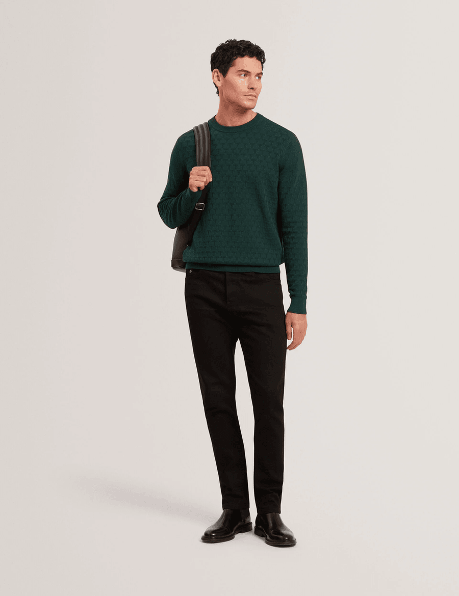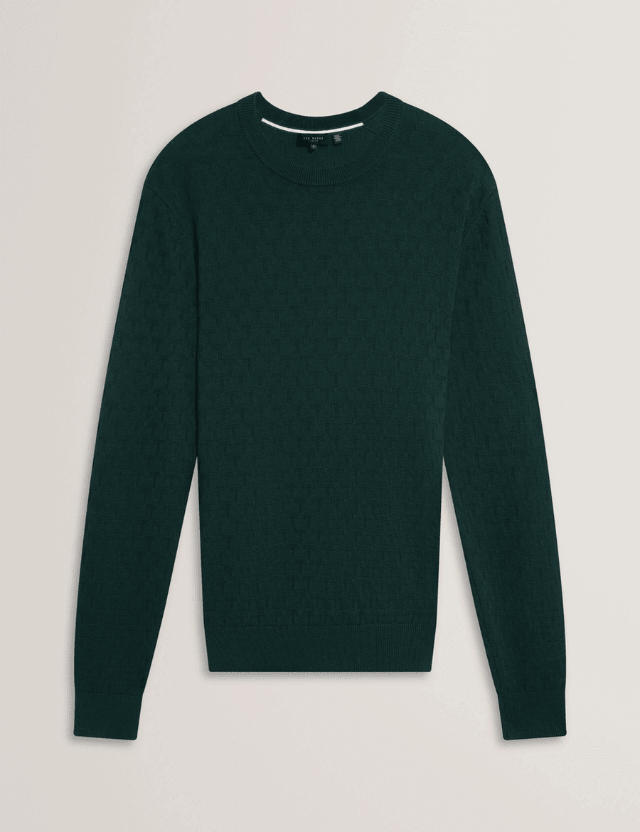 Discover the perfect blend of style and comfort with the Ted Baker SAINSY | DK-GREEN long sleeve jumper. Crafted from a luxurious wool and cotton blend, this classic crew neck jumper is designed for those who appreciate quality and sophistication.