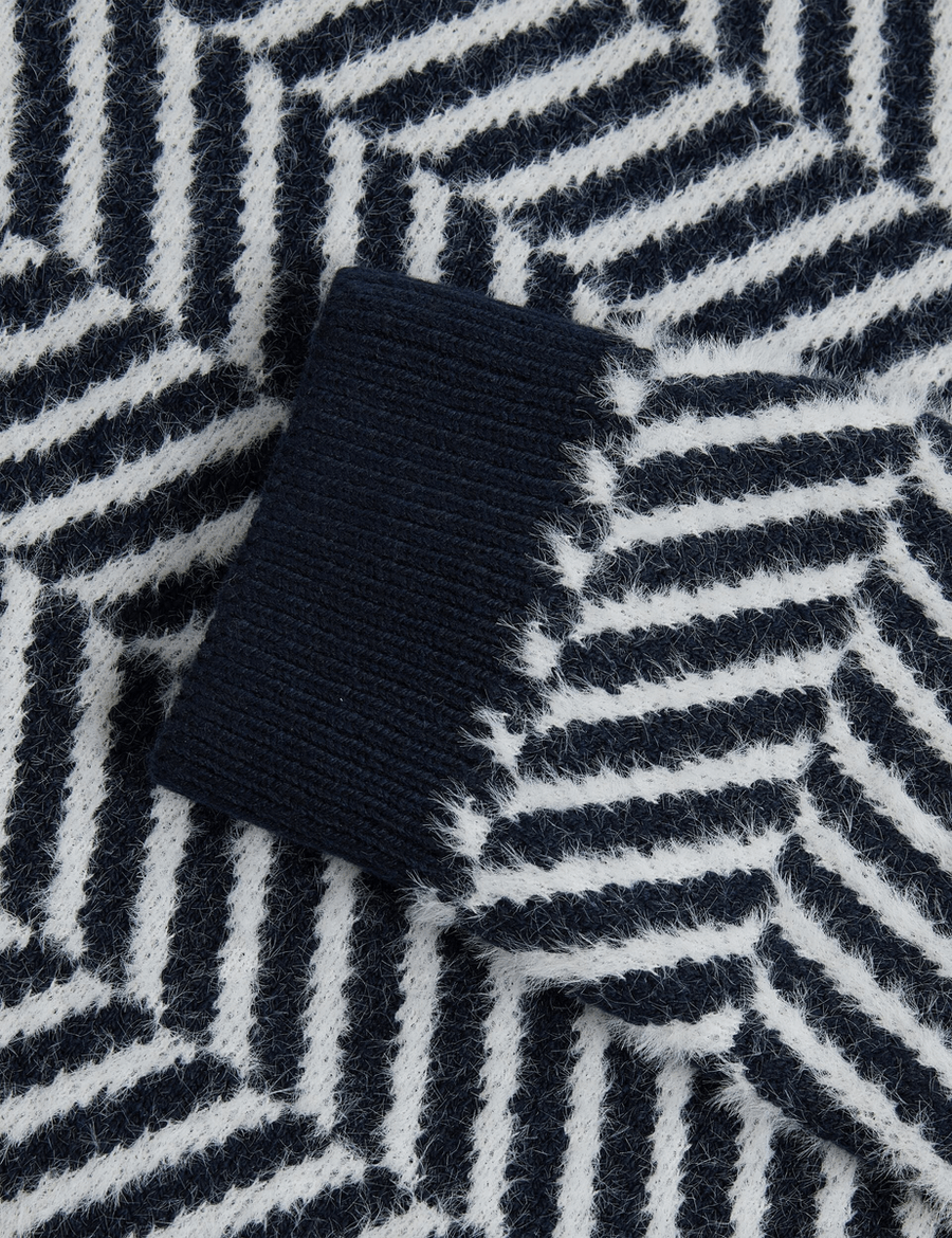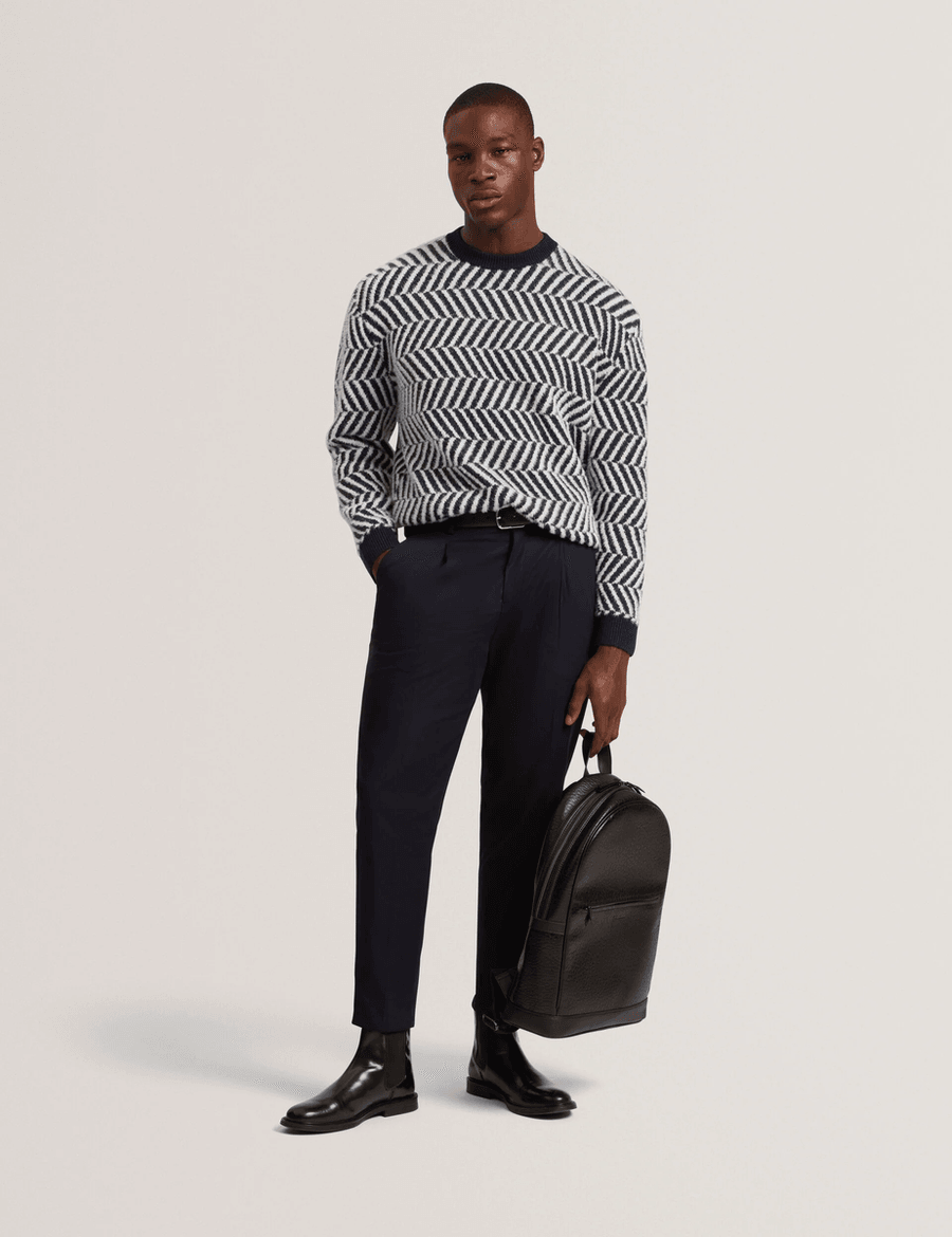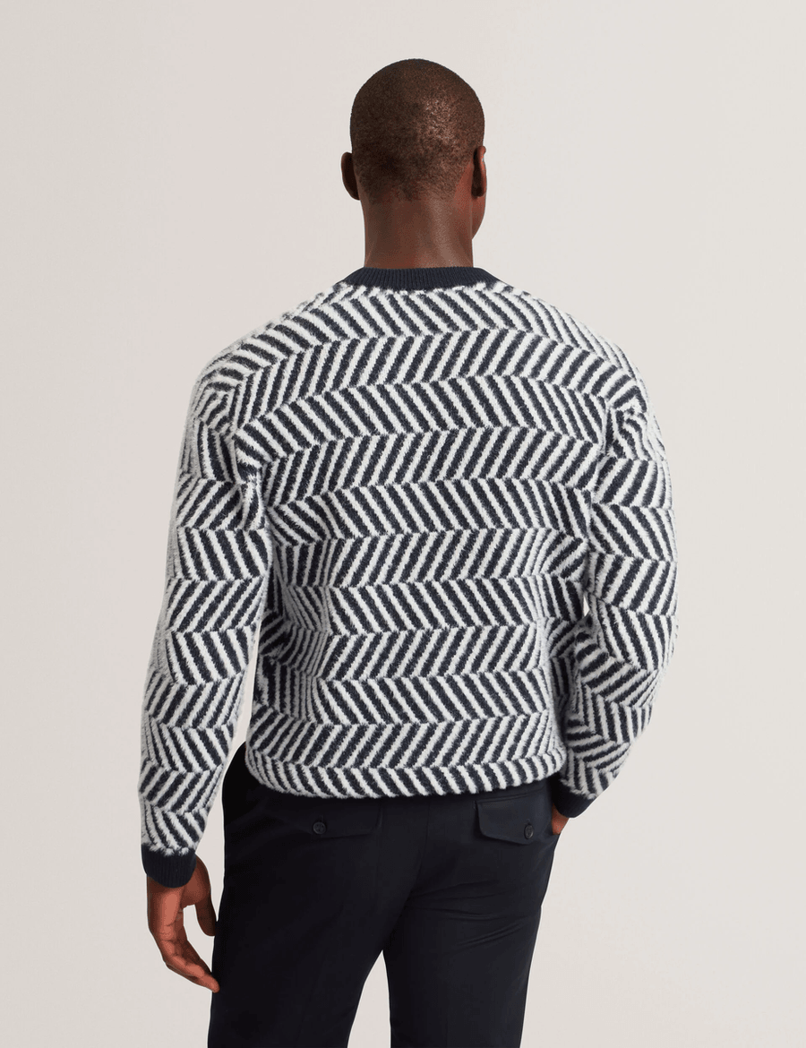 Discover the ultimate blend of style and comfort with the Ted Baker SERGEJ | NAVY long sleeve jumper. This chic piece features a unique two-tone zig-zag pattern that adds a modern twist to your everyday look. Perfect for layering or wearing solo, it’s crafted from a cozy wool blend that promises warmth without compromising on style.