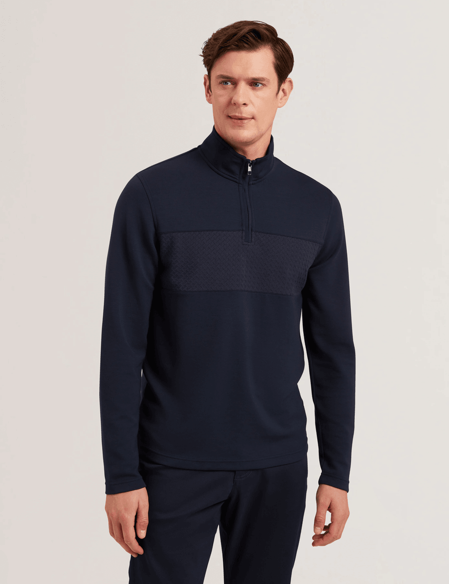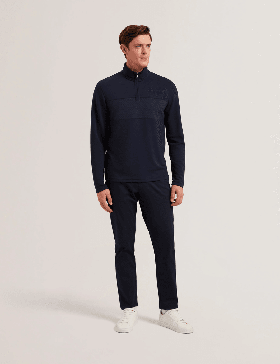 Experience the ultimate in style and comfort with the Ted Baker SIMONEA sweatshirt in navy. This luxurious quarter-zip layer is your go-to choice for chilly days, combining a modern aesthetic with classic functionality.
