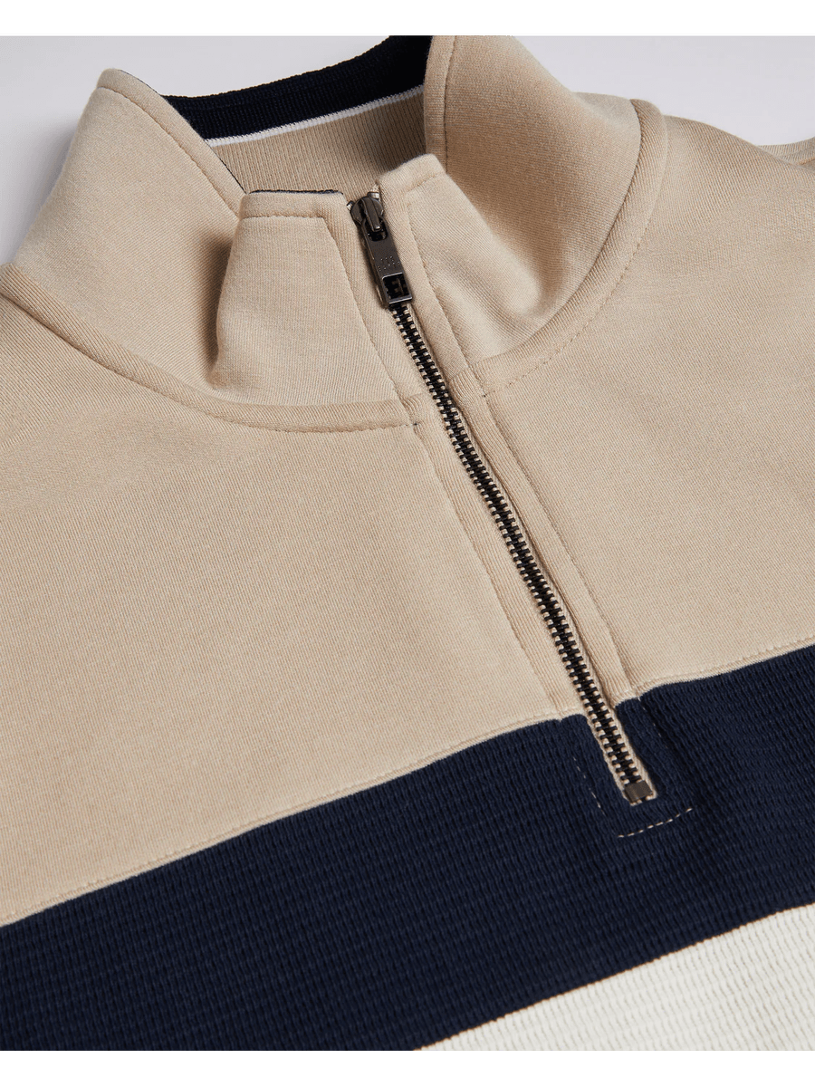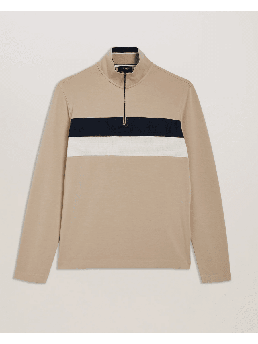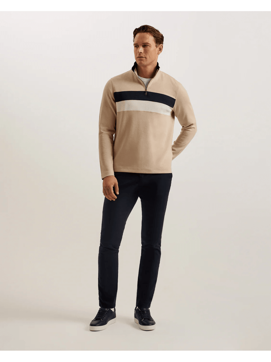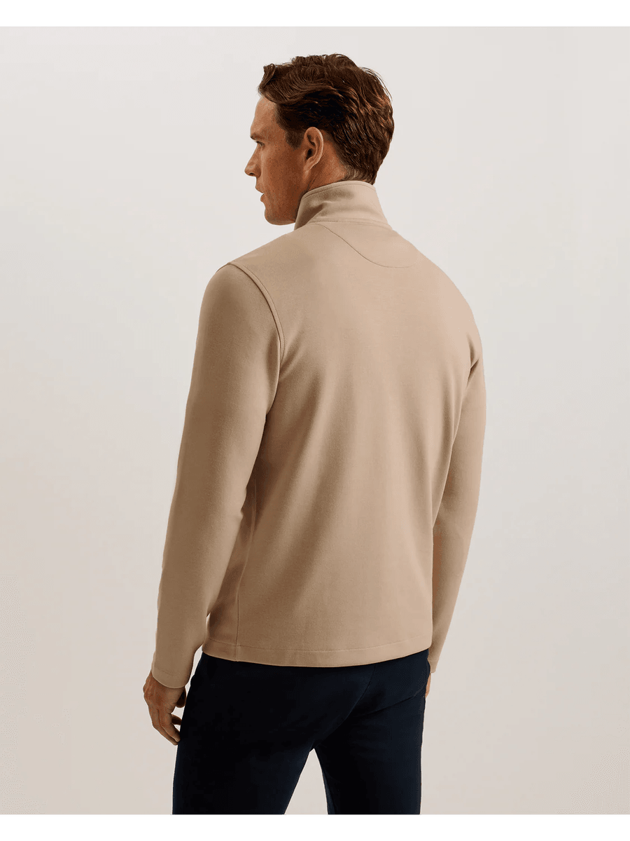 The Ted Baker VELLER | TAUPE is designed for the modern man who values both style and comfort. Its slim fit silhouette enhances your physique while providing a sophisticated edge. The 1/4 zip closure allows for easy wear and versatile styling, making it ideal for layering or wearing solo.