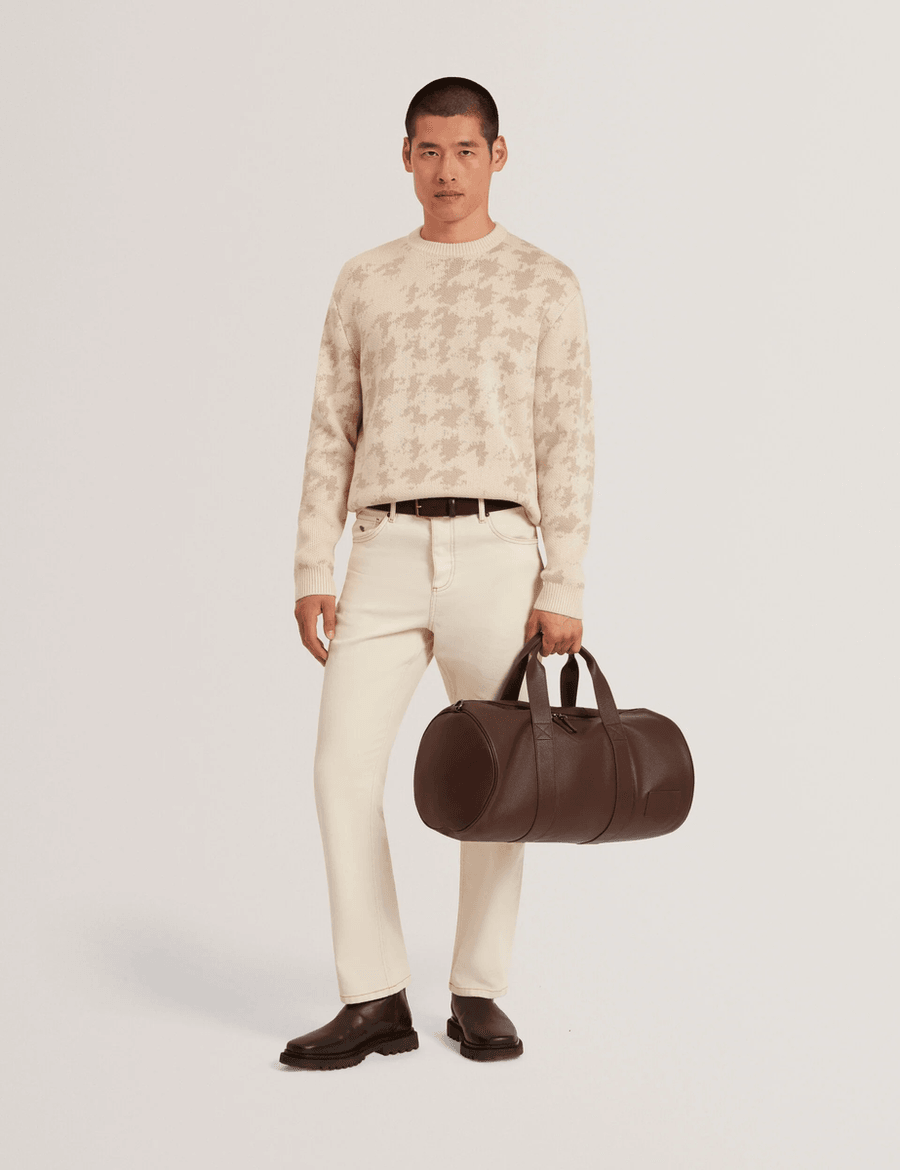 The Ted Baker ZENDAYD | ECRU is designed for those who appreciate high-quality fashion. With a crew neck that offers a timeless silhouette, this jumper is perfect for layering or wearing on its own. Matt, who stands at 6'2" (1.87m), showcases the flattering fit of size 3, ensuring that you look and feel your best.