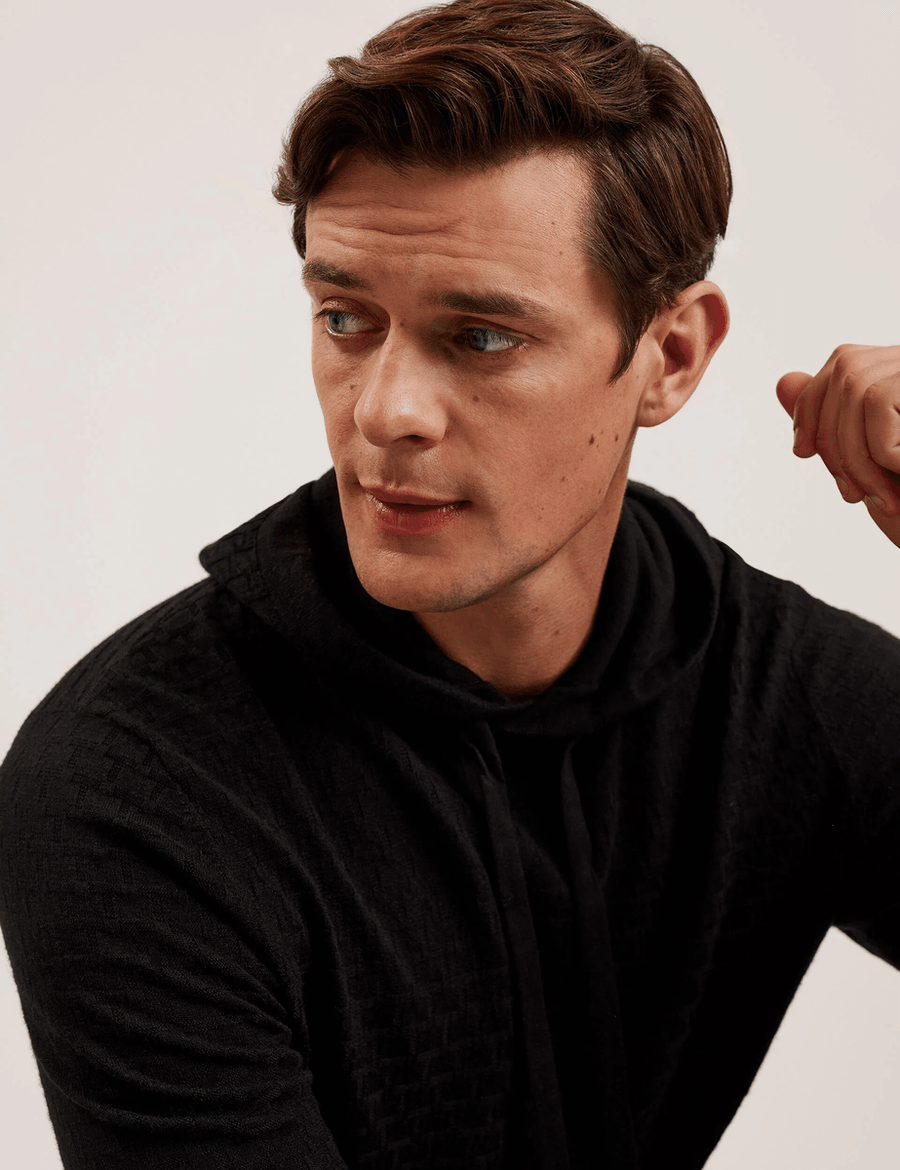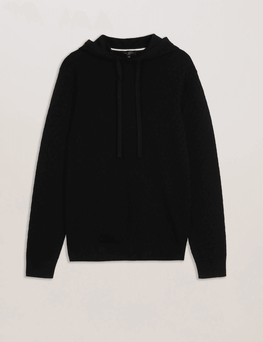 Elevate your style with the Ted Baker LOULAR hoodie, a perfect blend of fashion and comfort. This black long sleeve hoodie is crafted from a luxurious wool blend, making it ideal for cozy days and nights.