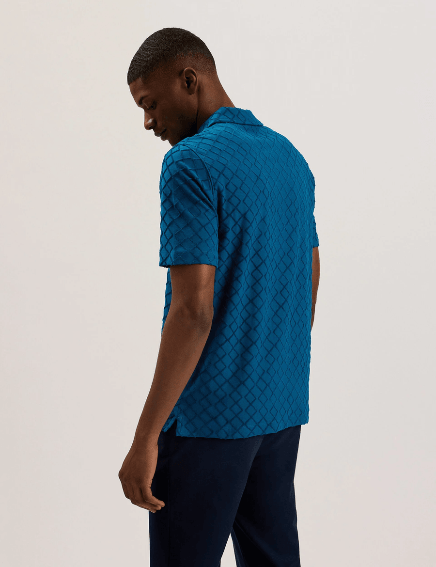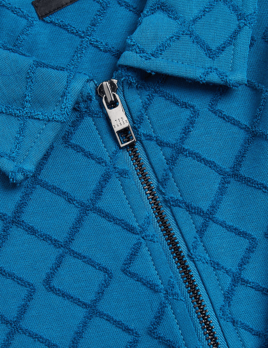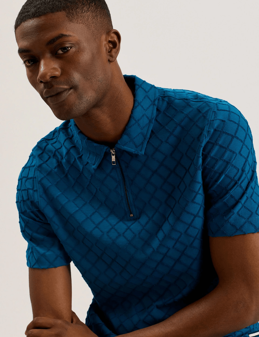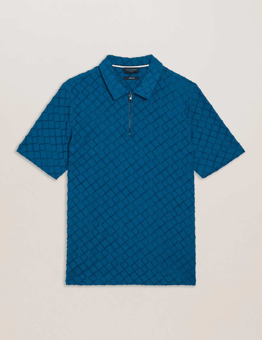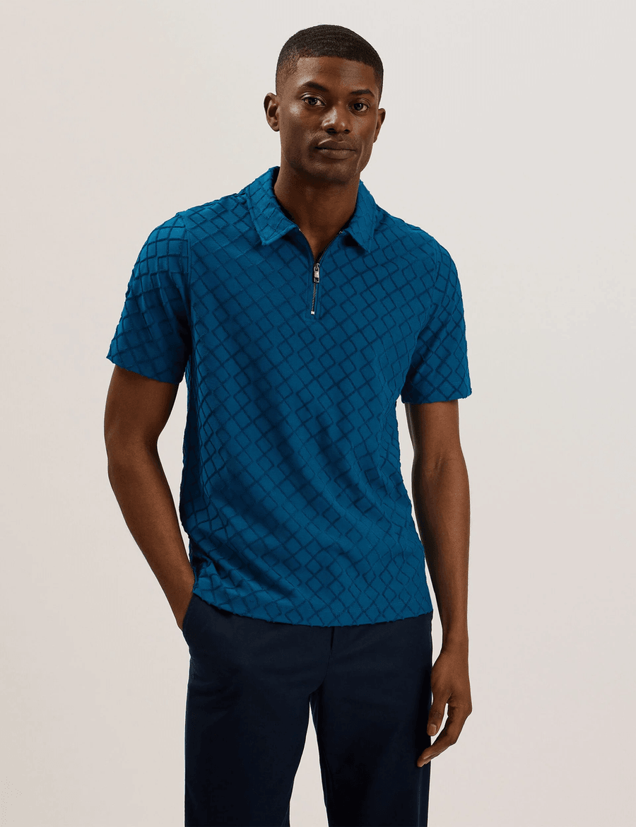 Discover effortless style with the Ted Baker ANSOM | TEAL-BLUE zip-neck textured towelling polo. This isn't just any polo; it's a chic fusion of playful texture and sophisticated design that will transform your everyday look.