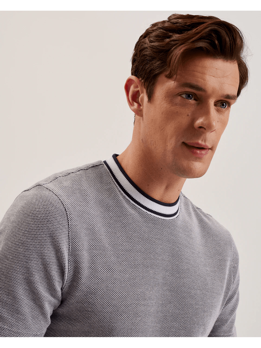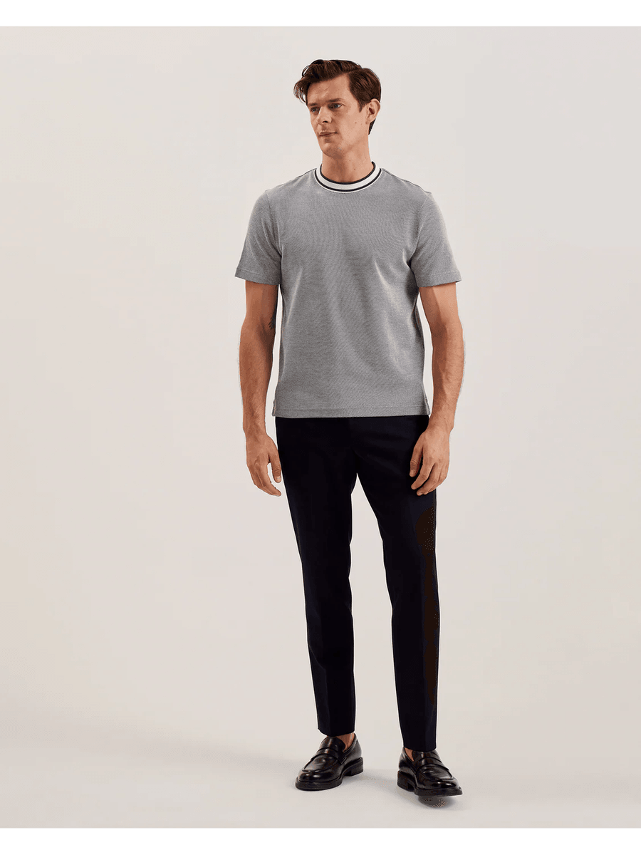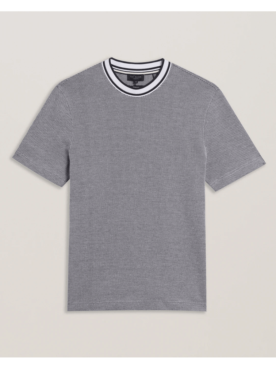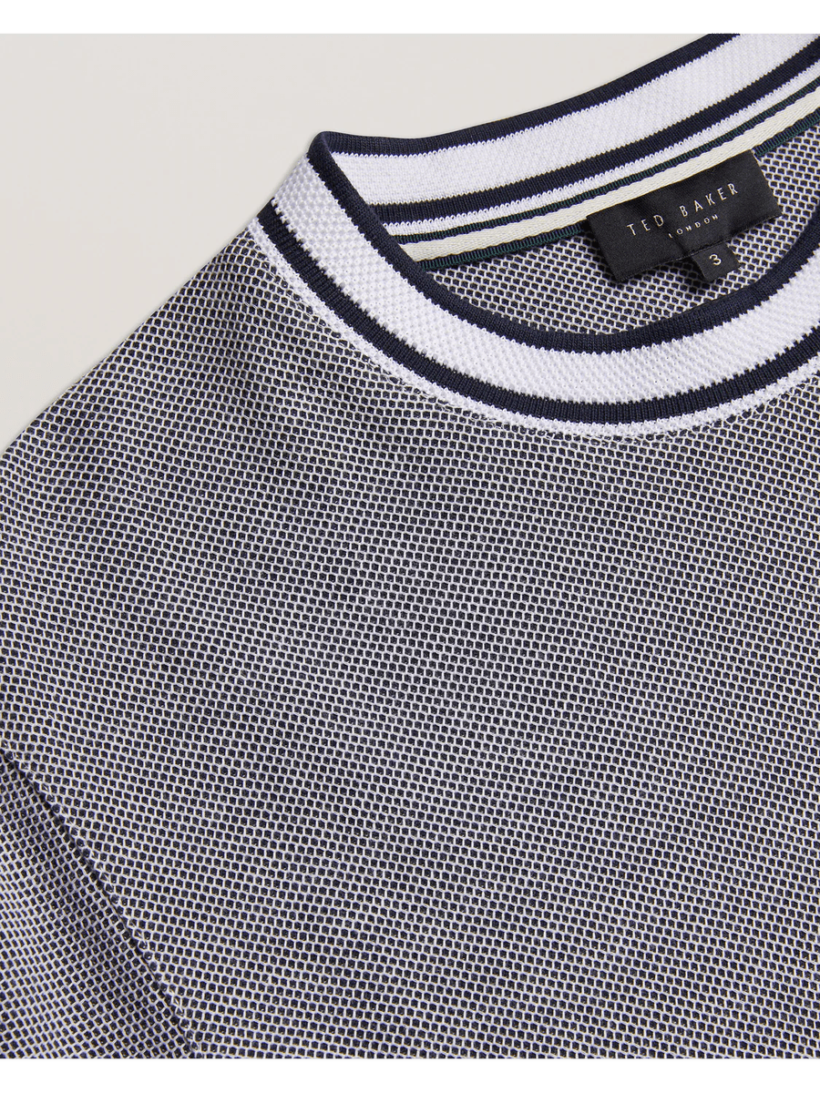 Discover the perfect blend of sophistication and comfort with the Ted Baker ARLON | NAVY t-shirt. Crafted with a unique honeycomb texture and made from 100% cotton, this stylish piece is designed to enhance your casual wardrobe.