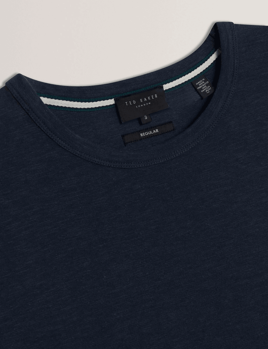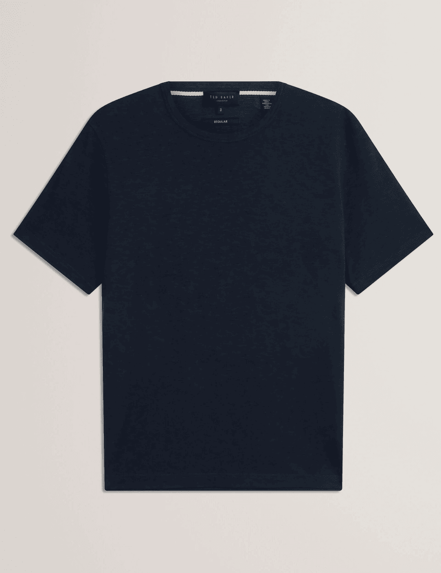 Discover the perfect blend of comfort and sophistication with the Ted Baker BARTOL | NAVY. This stylish t-shirt, crafted from a premium cotton-linen blend, offers a textured finish that sets it apart. Whether you're dressing up for a casual outing or enjoying a relaxed day at home, this t-shirt is a versatile addition to your wardrobe.