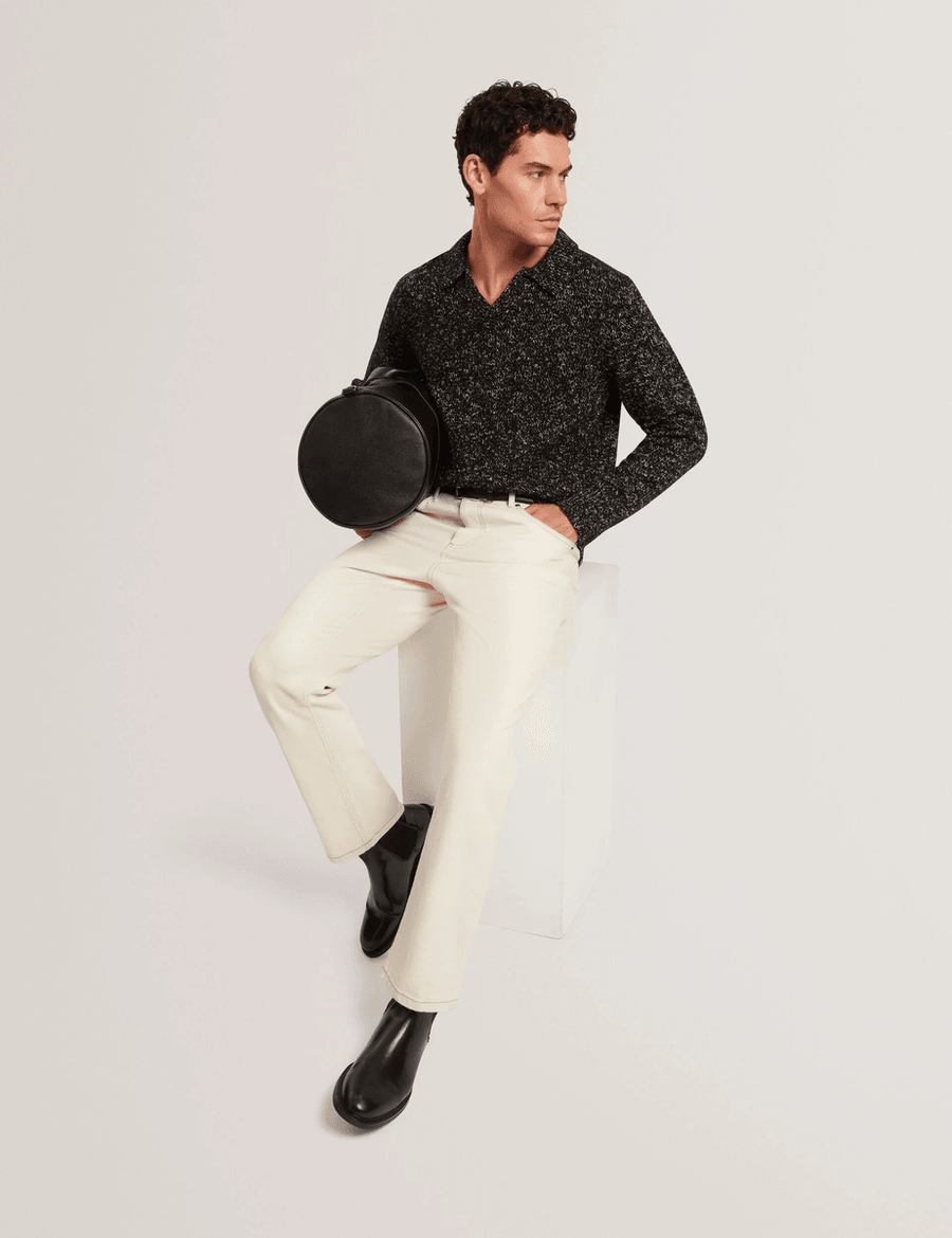 The Ted Baker BERRETO in black is not just a polo shirt; it’s a statement. Crafted with a unique melange two-tone knit, this shirt combines style and comfort seamlessly. The open neck collar offers a relaxed yet polished look, making it ideal for a variety of settings — from weekend brunches to casual office meetings.