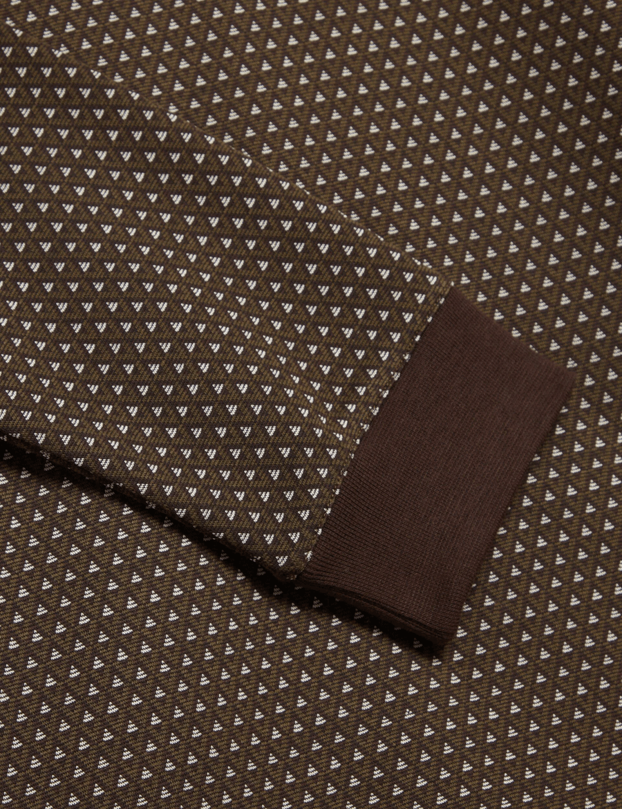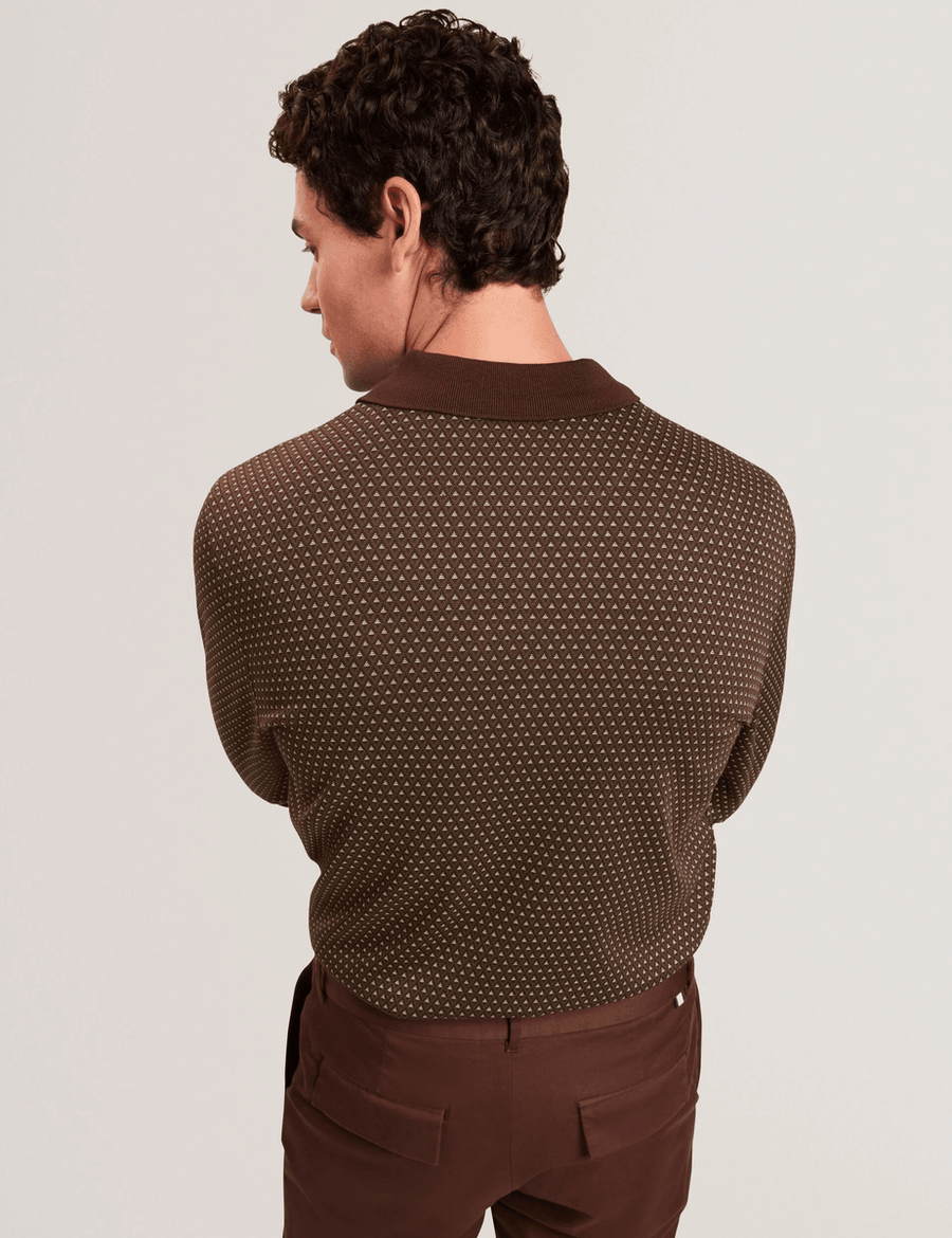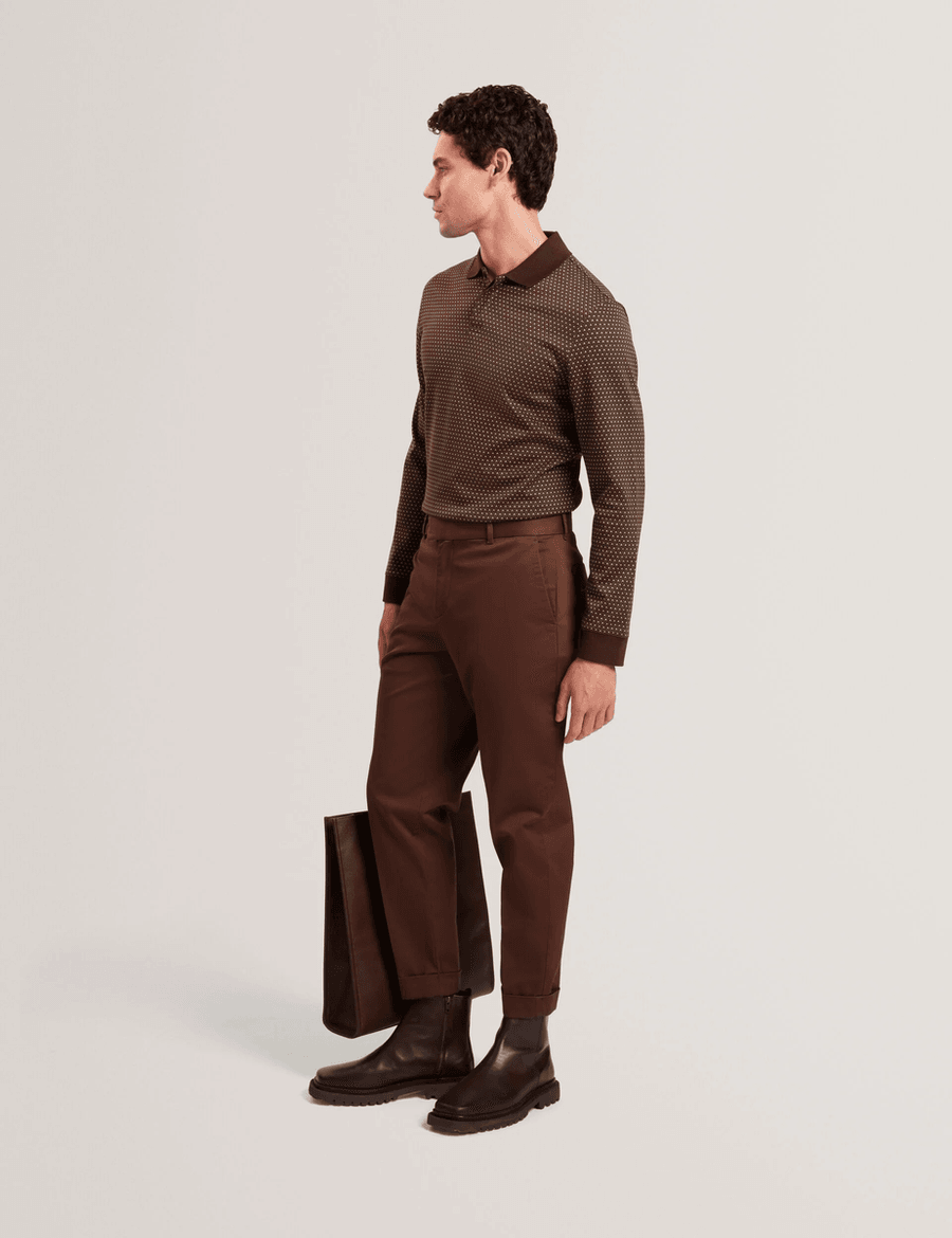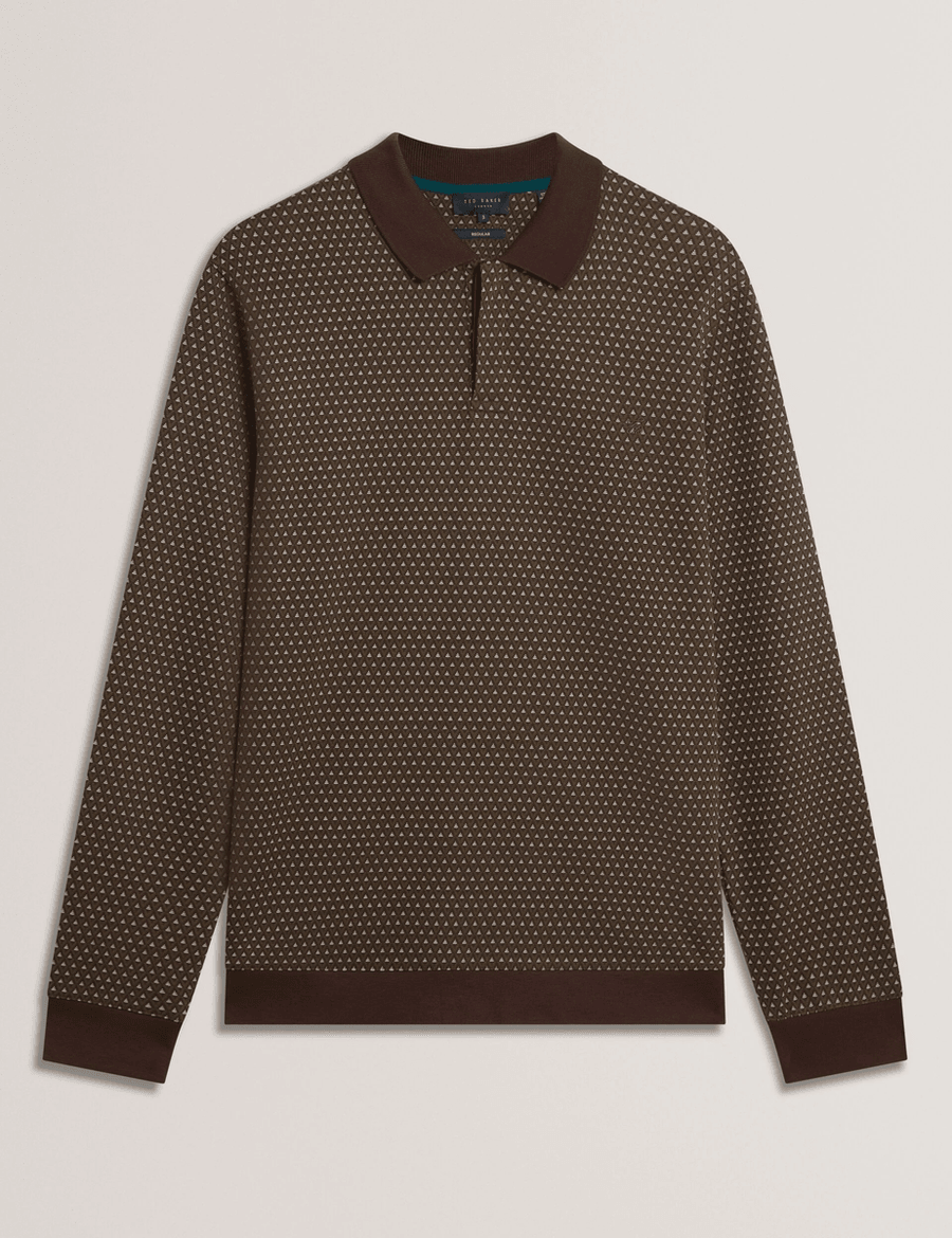 Discover the Ted Baker DURAND | BROWN, a classic long sleeve polo that effortlessly combines style and comfort. This standout piece features a unique micro geometric pattern that gives it a retro vibe, making it an essential addition to your smart-casual wardrobe.