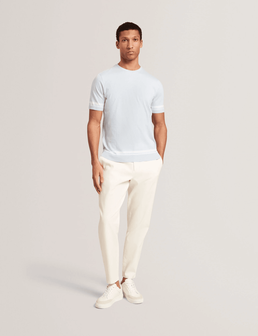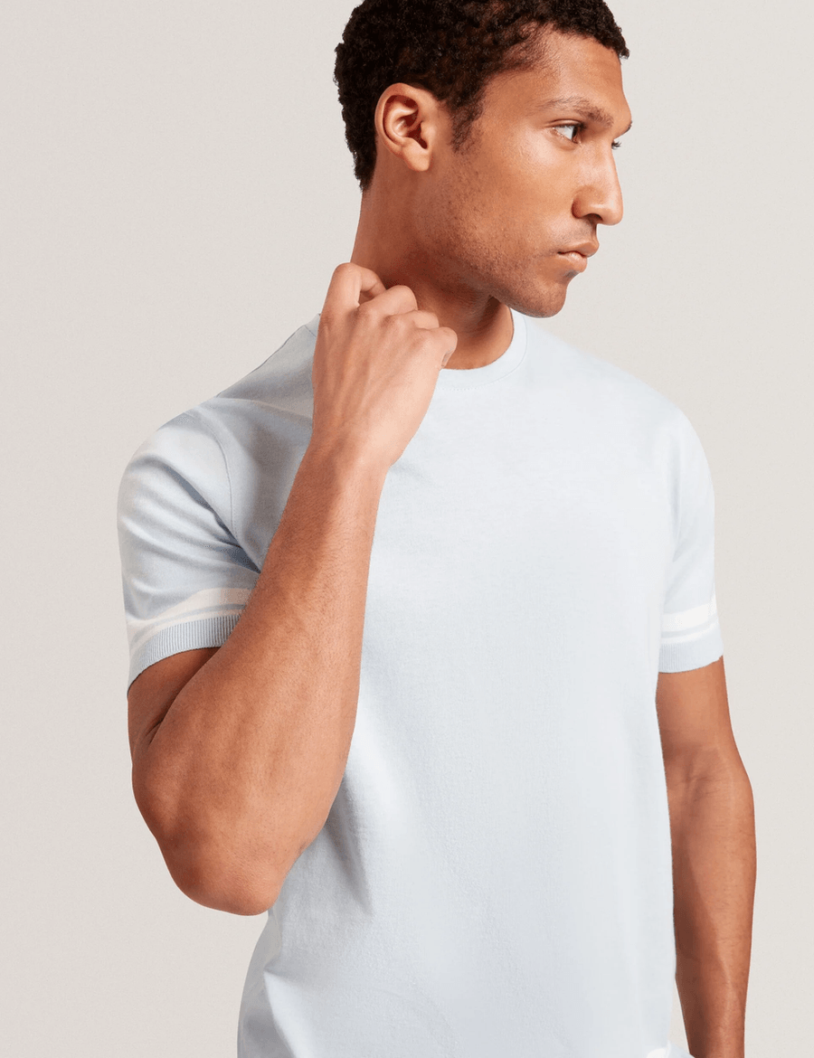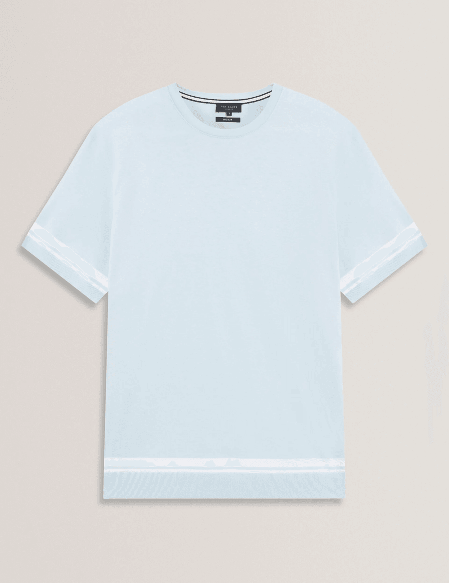 Discover the perfect blend of comfort and sophistication with the Ted Baker EAUTS | PL-BLUE. This regular fit t-shirt is crafted from fine knitted fabric, ensuring a lightweight feel that’s perfect for any occasion.