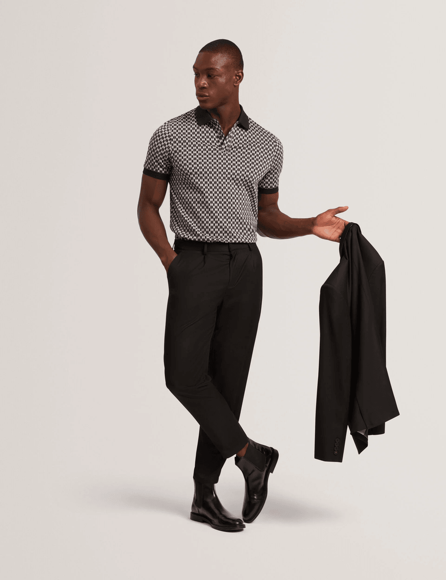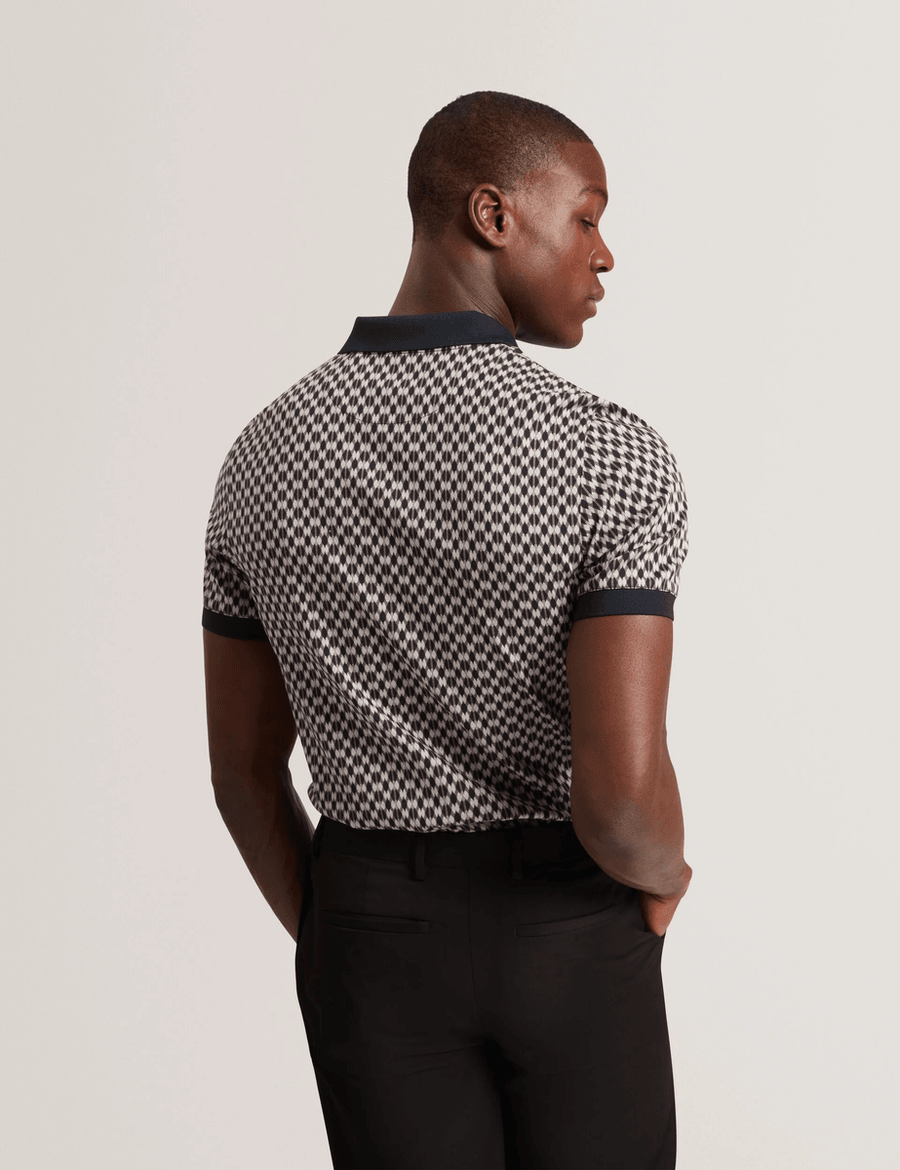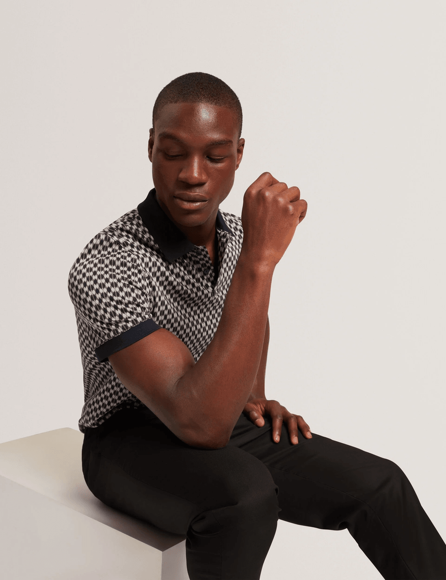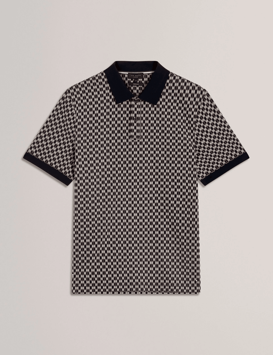 Discover the perfect blend of style and comfort with the Ted Baker ERNIST | NAVY short sleeve polo shirt. Designed with a jacquard mini argyle pattern and solid color cuffs and collar, this shirt is a must-have for the modern gentleman. Crafted from pure cotton, it offers a luxurious feel that’s perfect for any occasion.