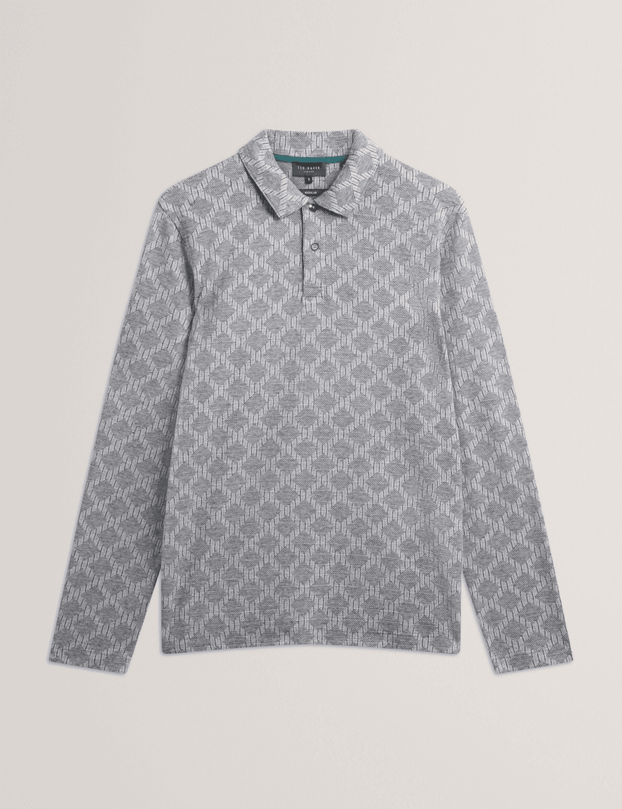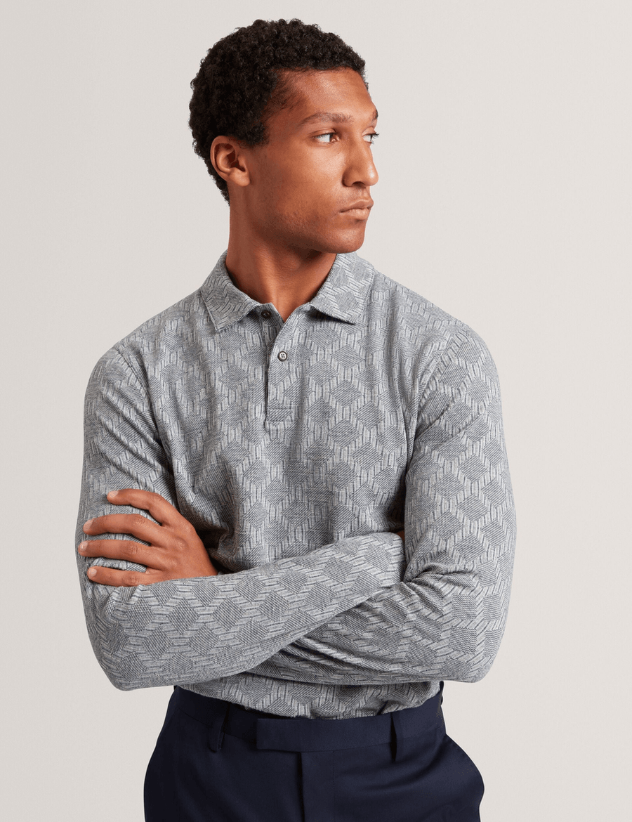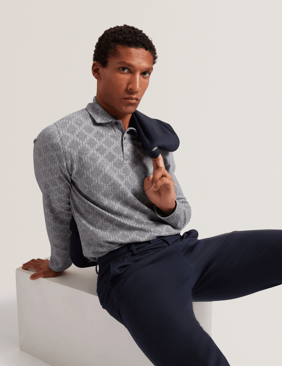 The Ted Baker IMLAD | MID-BLUE features a unique jacquard diamond pattern that sets it apart from standard polos. Crafted with a two-tone ribbed texture, this shirt not only looks great but also feels fantastic against your skin. Made from high-quality stretch cotton, it offers flexibility and comfort, making it perfect for both casual outings and semi-formal events.