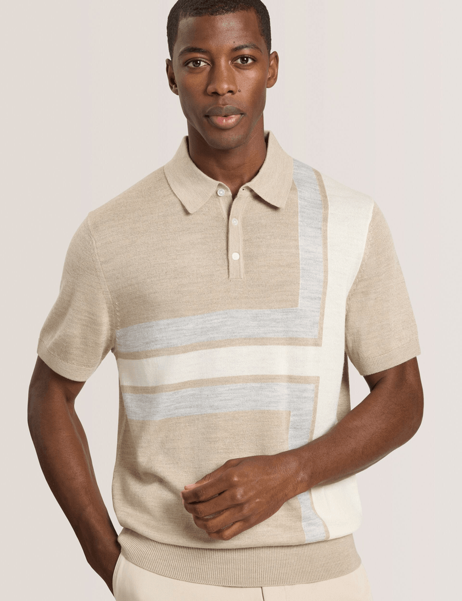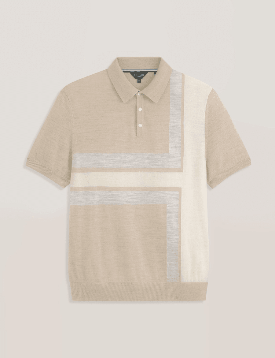Elevate your wardrobe with the Ted Baker INTARSIA SWEATER POLO in LT-CAMEL HEATHER. This stylish short sleeve polo offers a modern twist on a classic silhouette, making it an essential addition to any fashion-forward closet.
