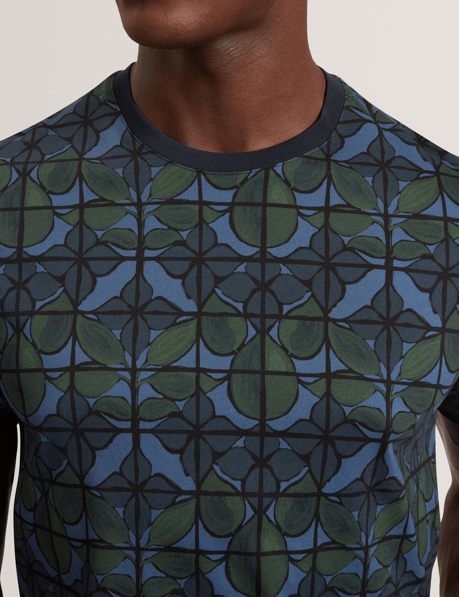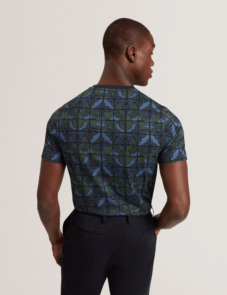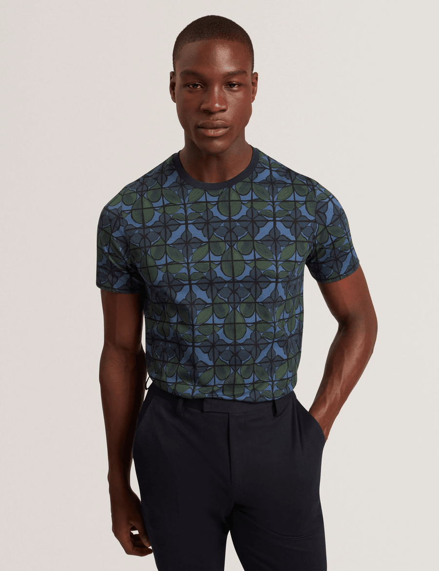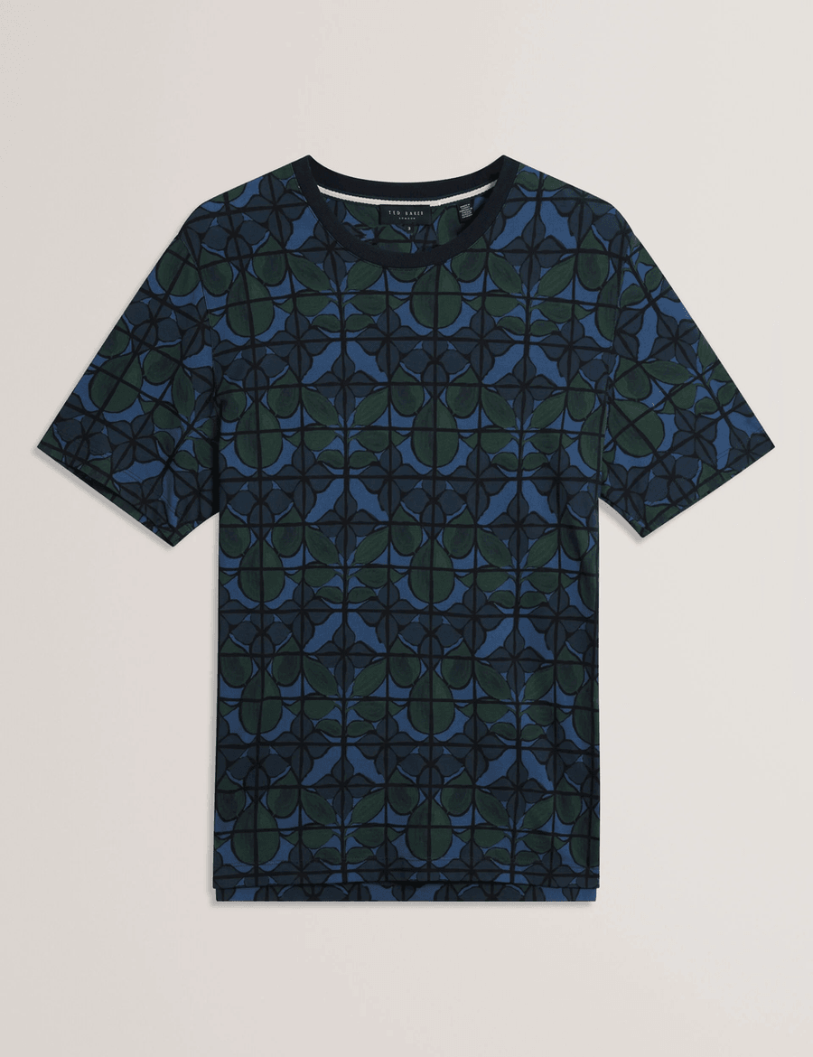 Discover the stylish charm of the Ted Baker JAAKUB | NAVY, a must-have addition to your casual collection. This short sleeve t-shirt features a unique stained glass window print that sets you apart, making it perfect for any occasion.