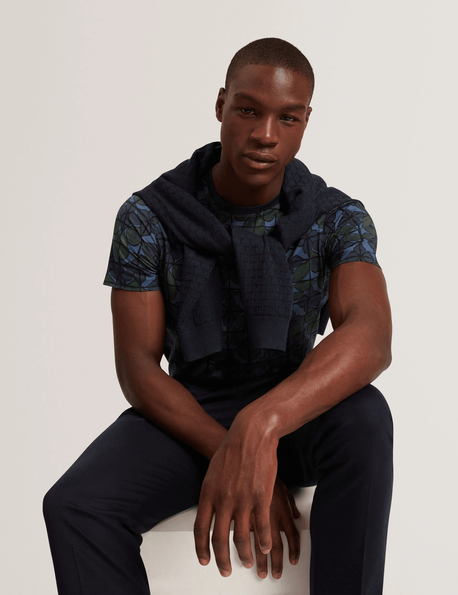 Perfect for layering or wearing solo, this t-shirt pairs effortlessly with jeans, shorts, or chinos. Whether you're heading out for a casual brunch or a night out, the Ted Baker JAAKUB | NAVY is your go-to choice for comfort and style.