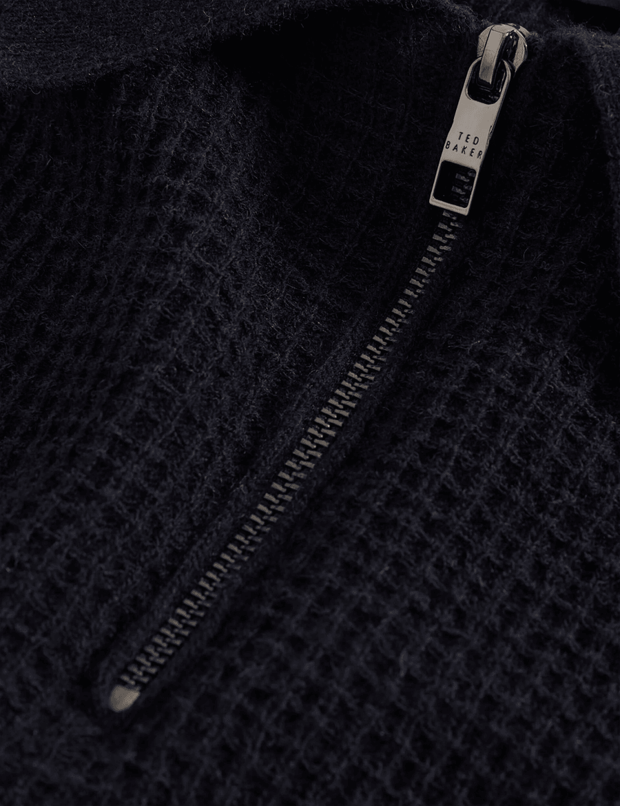 The Ted Baker JAYLON | NAVY is designed for the contemporary gentleman who values both style and comfort. With its ribbed sleeves and sophisticated polo collar, this shirt effortlessly transitions from casual outings to formal events. The zippered neckline allows for easy layering, making it a versatile choice for any season.