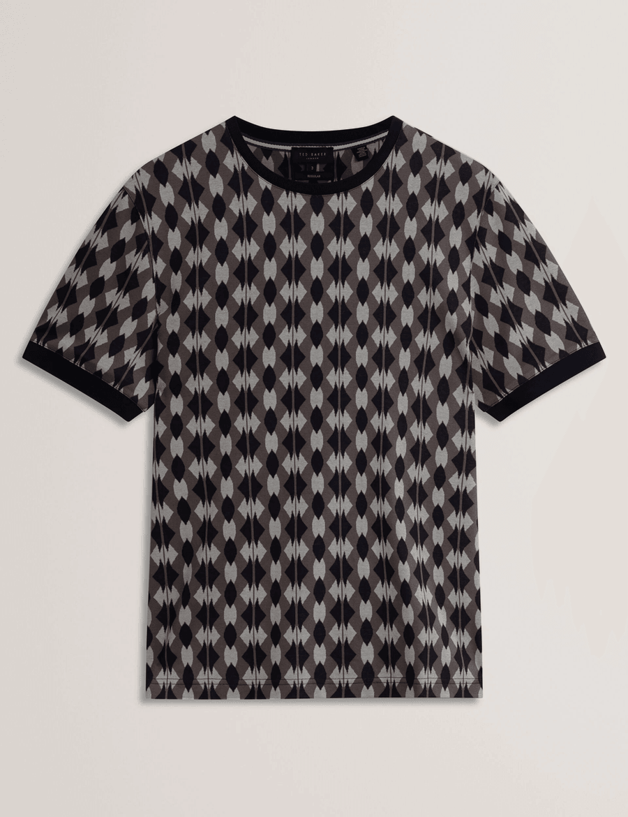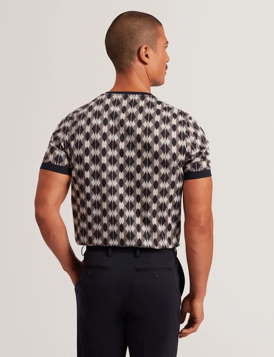 The Ted Baker JOAA | NAVY is designed for those who appreciate a blend of classic and contemporary style. With its ribbed trims and regular fit, this t-shirt flatters all body types. It’s perfect for casual outings, weekends, or even as a layering piece for a more polished ensemble.