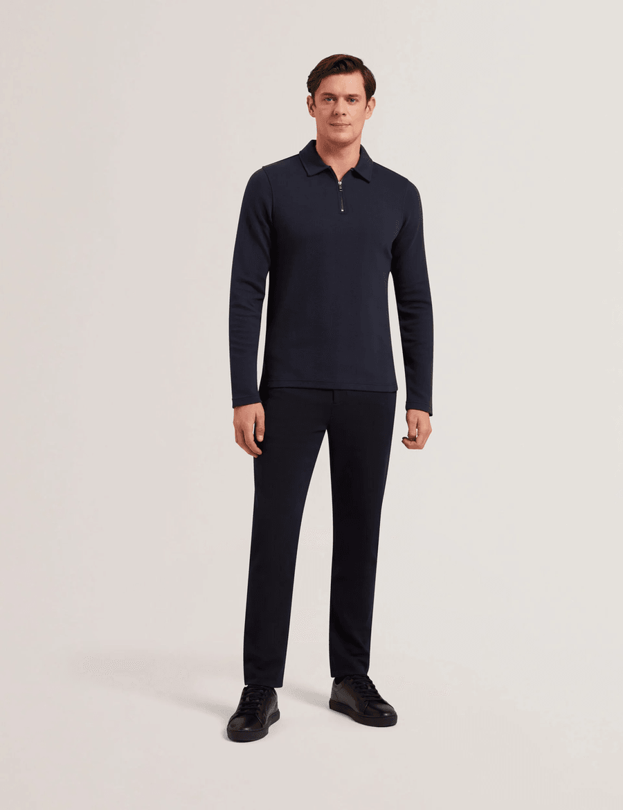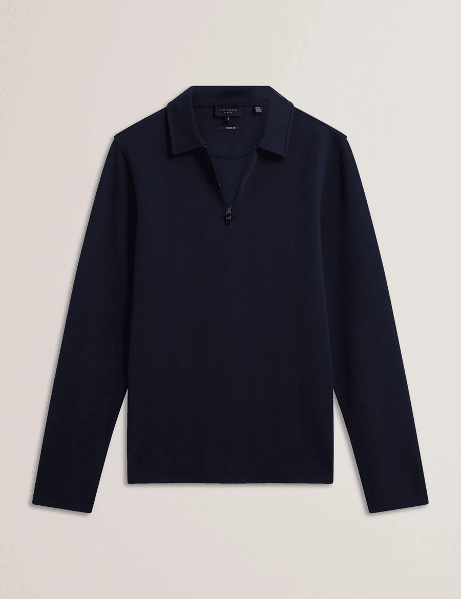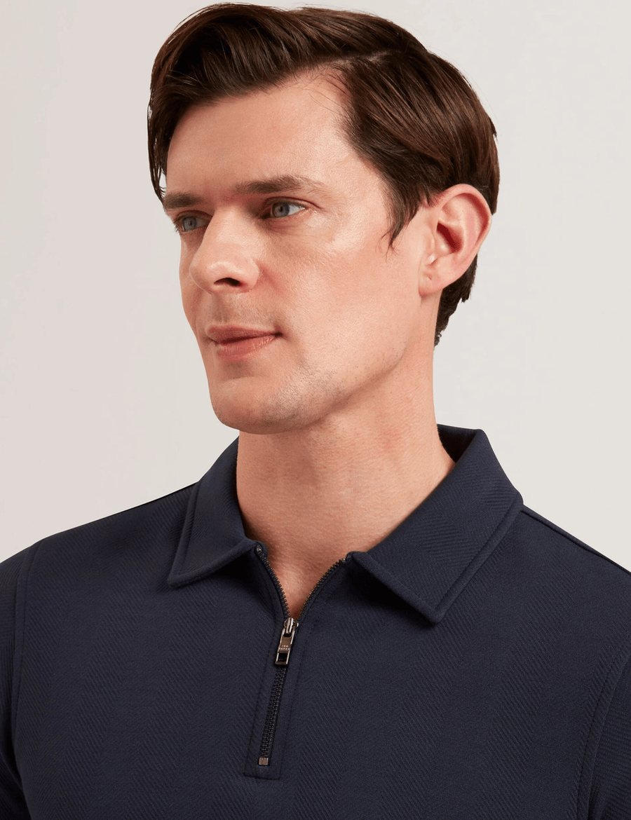 The Ted Baker KALEND | NAVY is more than just a polo; it's a statement piece. Ideal for casual outings or smart-casual occasions, this shirt pairs effortlessly with chinos or jeans. The zip neck design allows for a customizable fit, making it perfect for layering. With its refined herringbone texture, this polo elevates any ensemble.