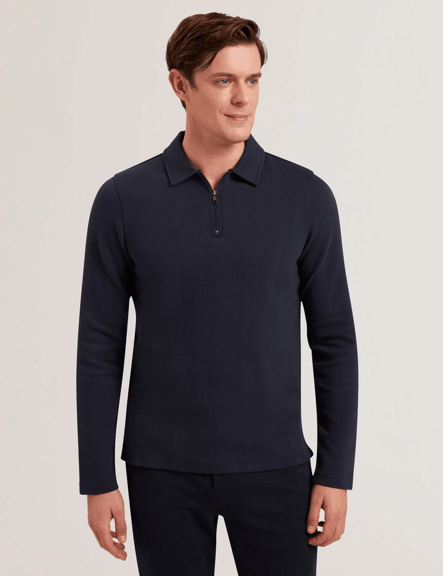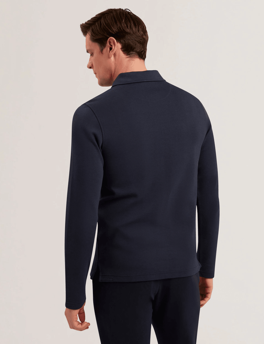 Discover the perfect blend of style and comfort with the Ted Baker KALEND | NAVY. This long sleeve polo shirt is designed for the modern man who values sophistication and versatility in his wardrobe. Crafted from pure cotton, it features a unique herringbone texture that adds depth to your look.