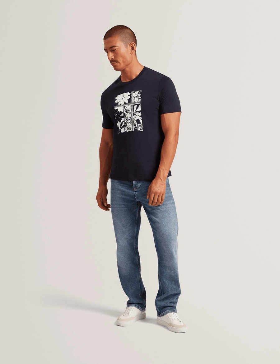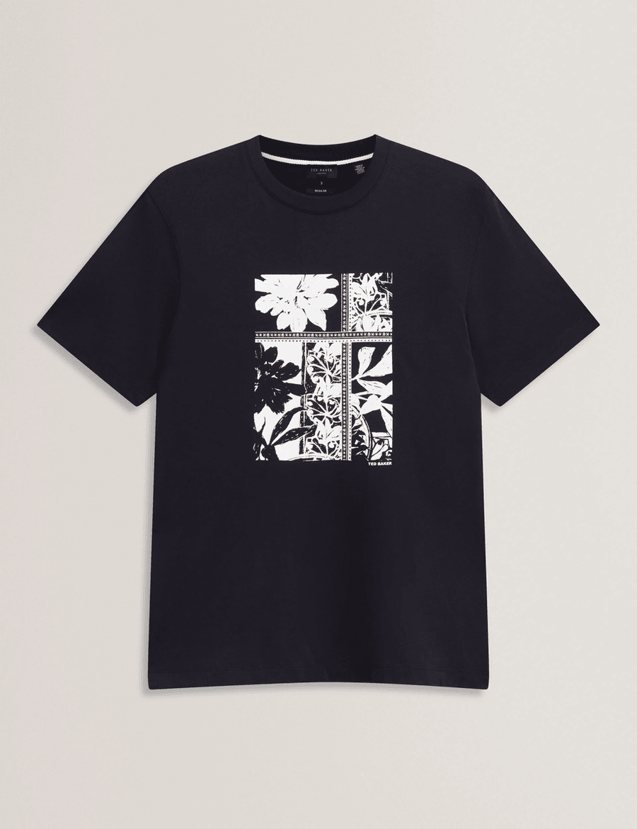 Introducing the Ted Baker KONEY | NAVY, the perfect blend of comfort and style for your wardrobe. This short sleeve t-shirt showcases a stunning botanical print box graphic, complemented by a subtle logo detail, making it a must-have for fashion-forward individuals.