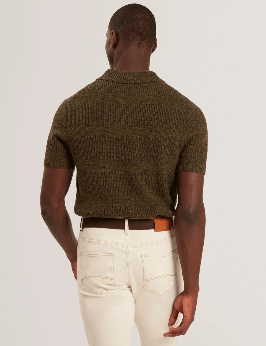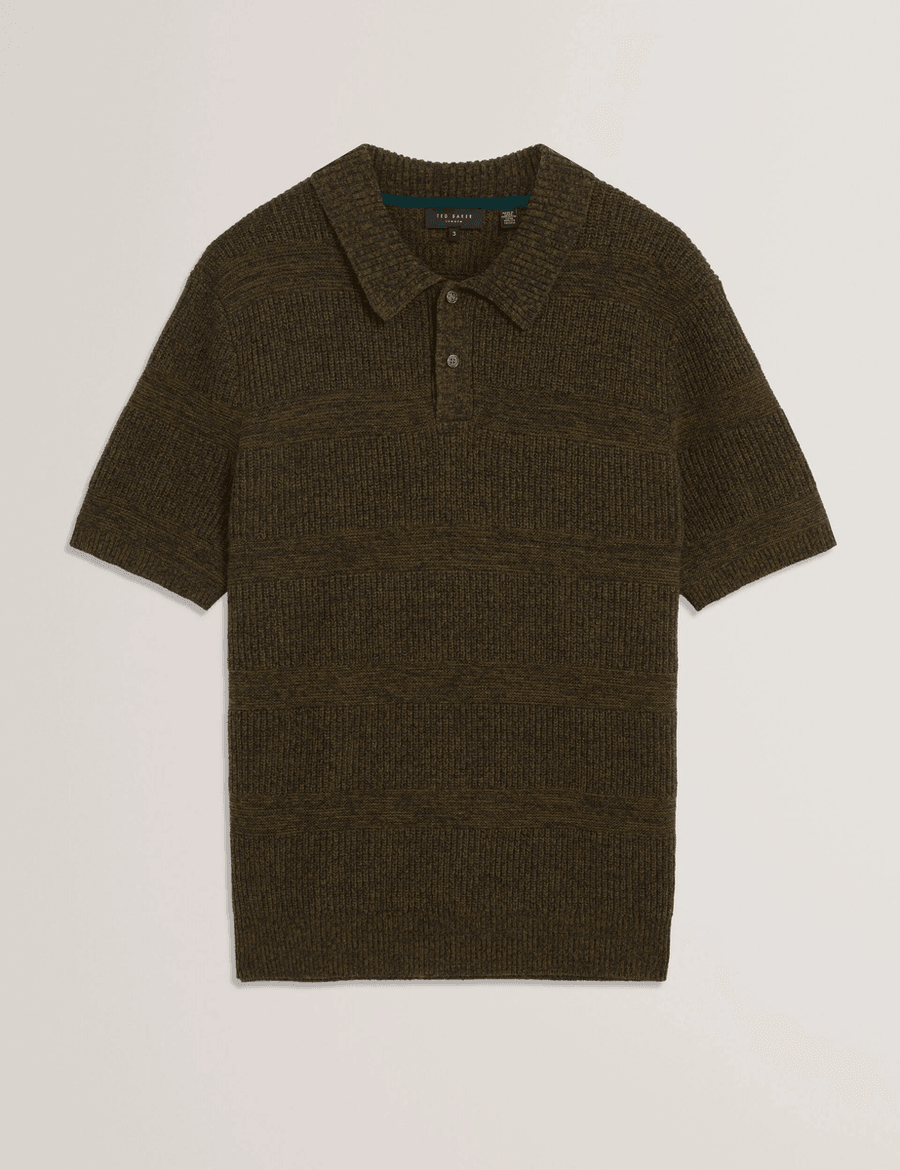 Discover the perfect blend of style and comfort with the Ted Baker MAVIK | BROWN short sleeve polo. Crafted from a thick wool-rich knit, this polo features a mixed color marled weave that adds depth and character to your outfit. Whether you're dressing up for a casual outing or keeping it laid-back, this polo is a versatile addition to any wardrobe.