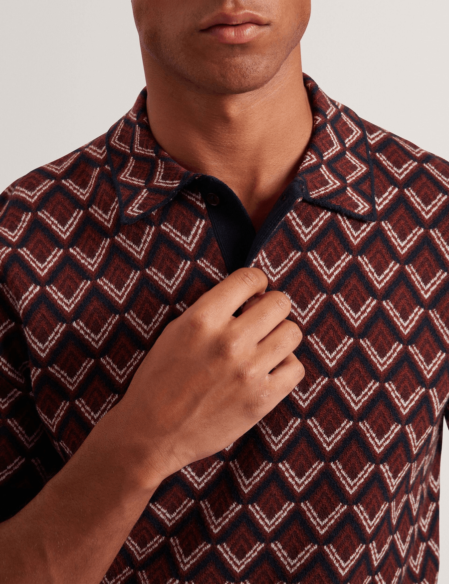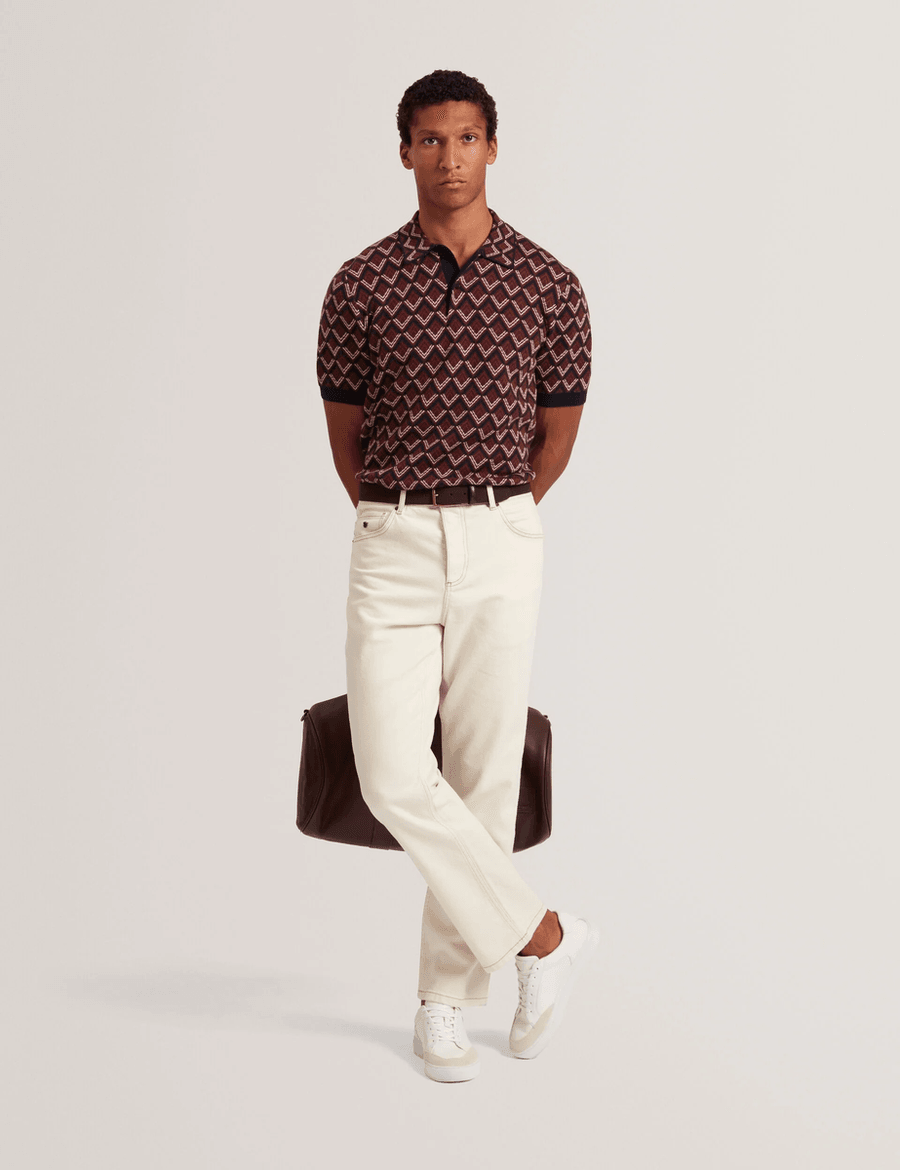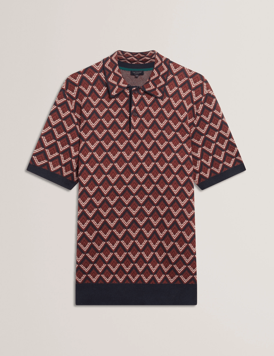 Discover the perfect blend of sophistication and comfort with the Ted Baker MELVVIN | MAROON. This short sleeve polo is designed for the modern man who values both style and functionality. With its unique two-tone diamond pattern and rich maroon hue, this polo effortlessly enhances any wardrobe.