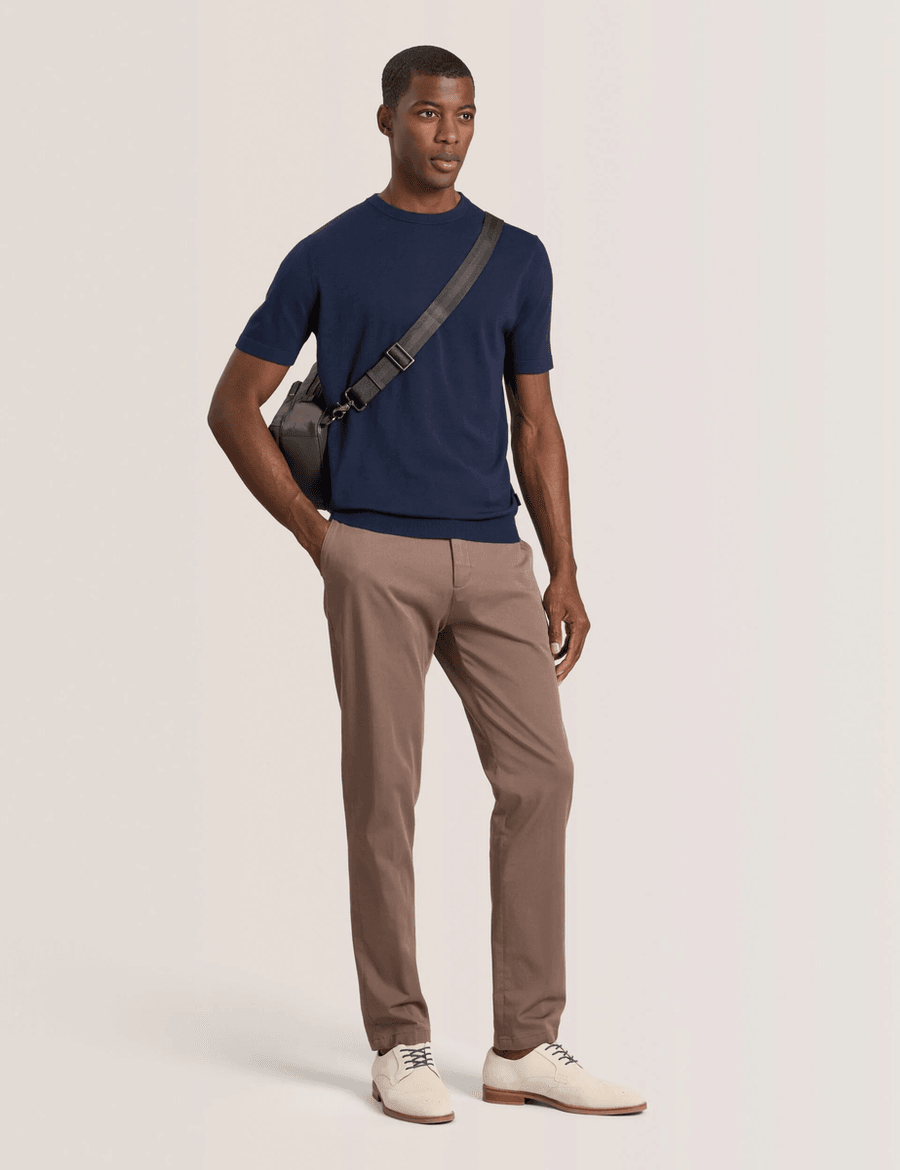 The Ted Baker MODERN VISCOSE BLEND CREW | SEA NAVY is perfect for casual outings or lounging at home. Its short sleeves and crew neck design make it versatile enough to pair with shorts, jeans, or joggers. The modern viscose blend ensures you stay comfortable throughout the day while looking effortlessly stylish.