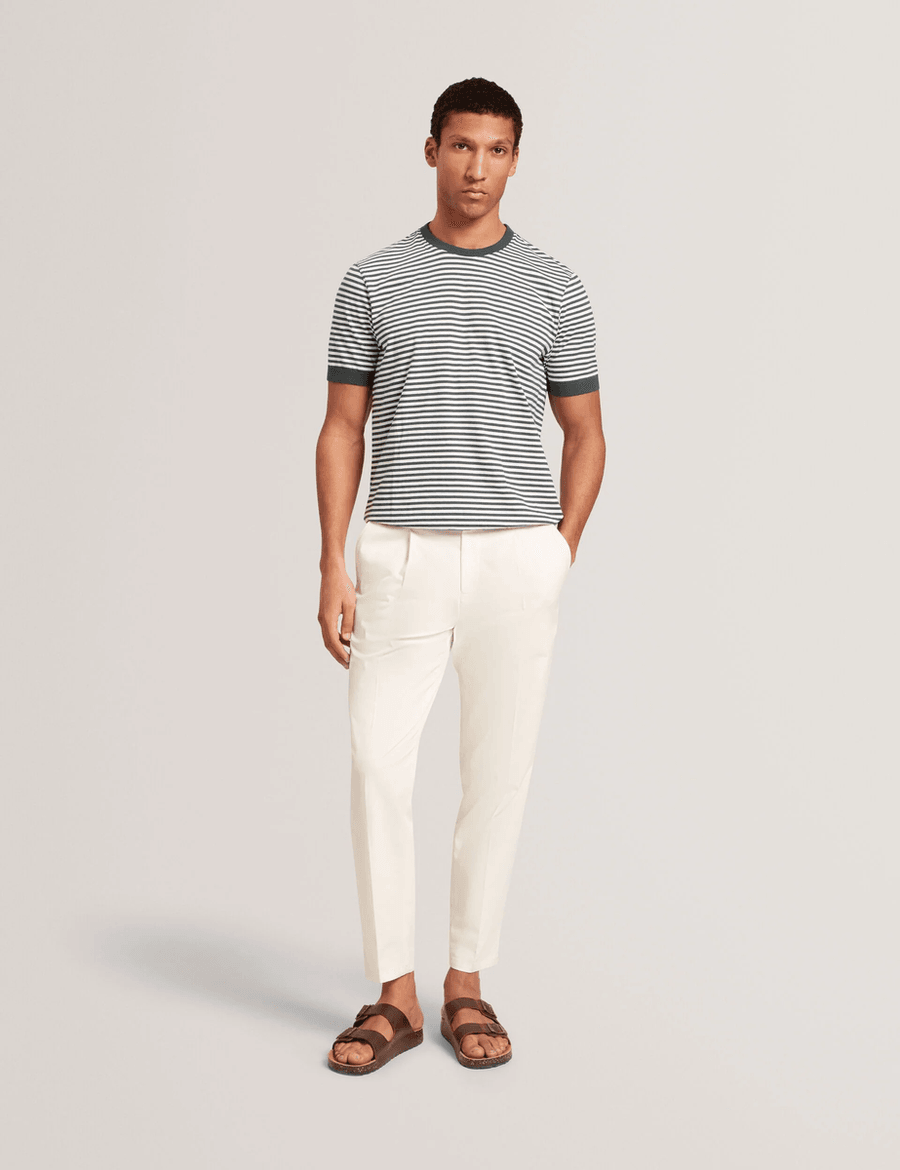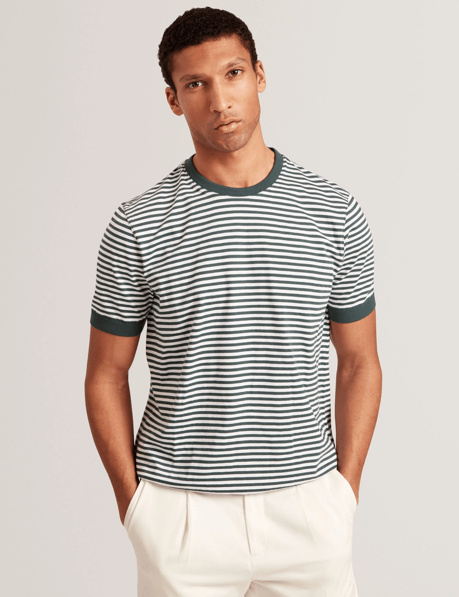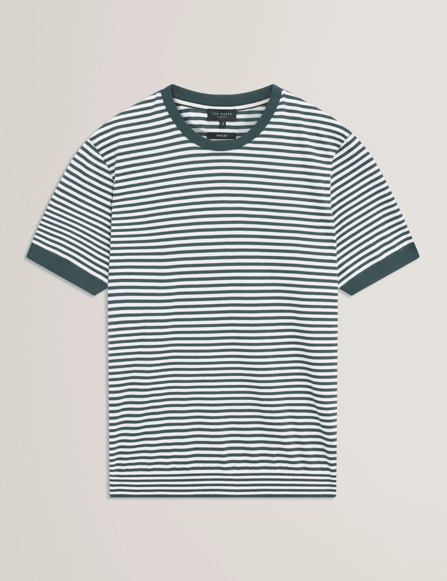Elevate your casual wardrobe with the Ted Baker OURME | DK-GREEN short sleeve t-shirt. This stylish piece features a contemporary horizontal stripe pattern, perfect for those seeking a blend of comfort and sophistication. Made from 100% lightweight cotton, it ensures breathability and soft feel against the skin.