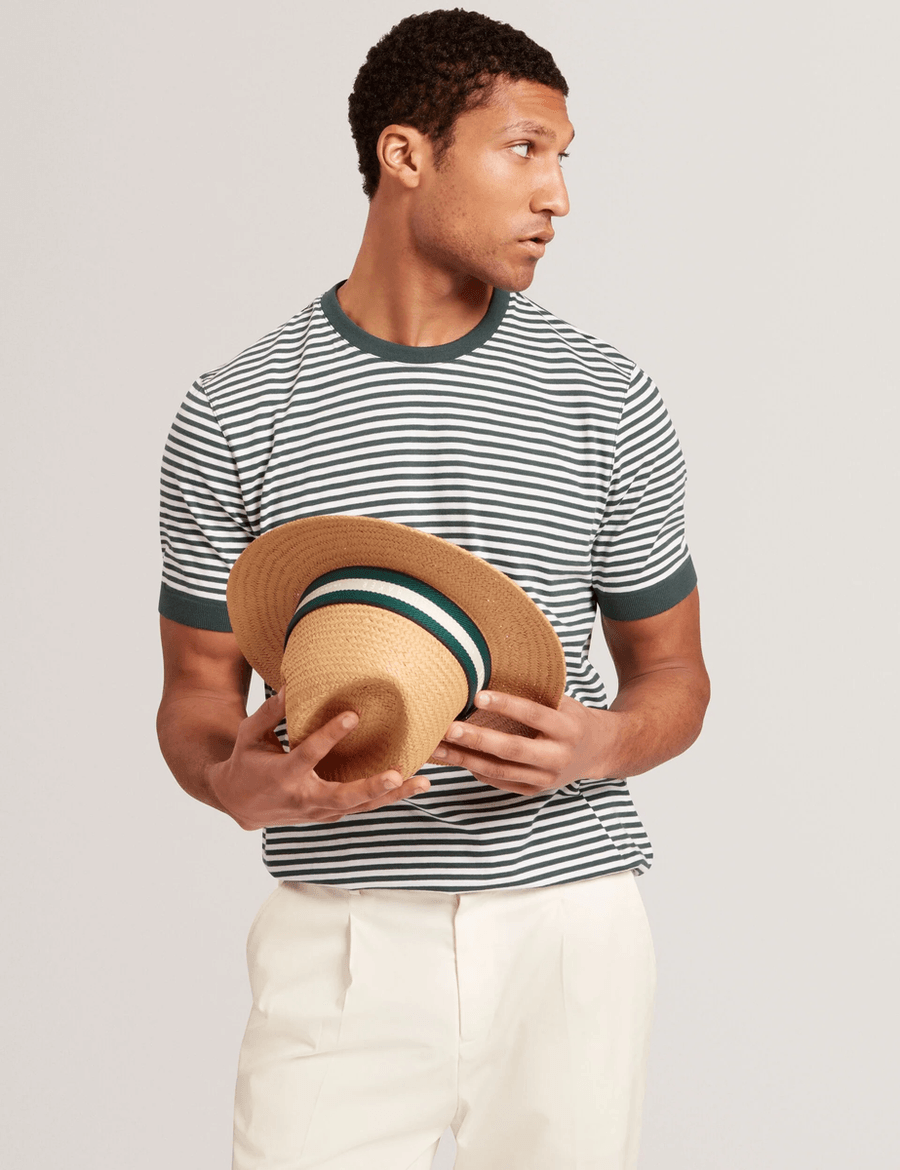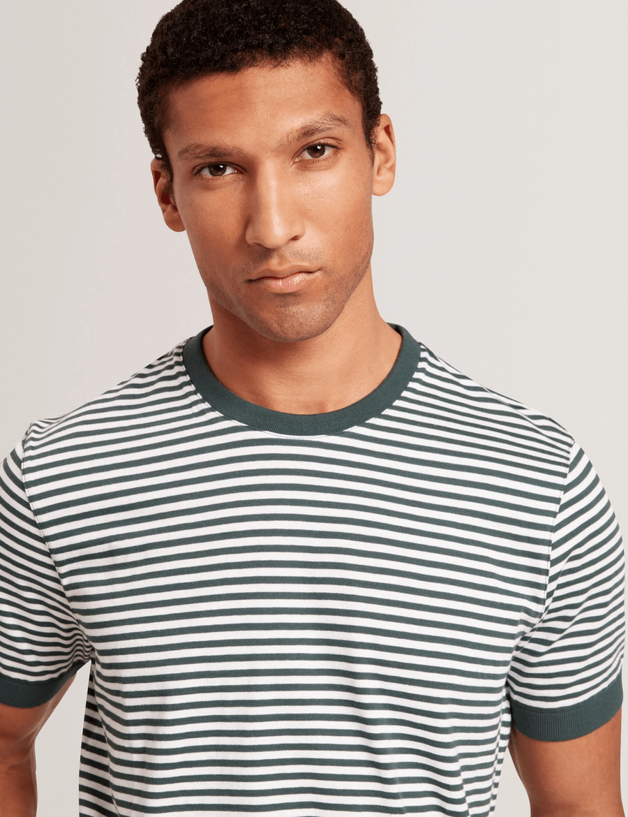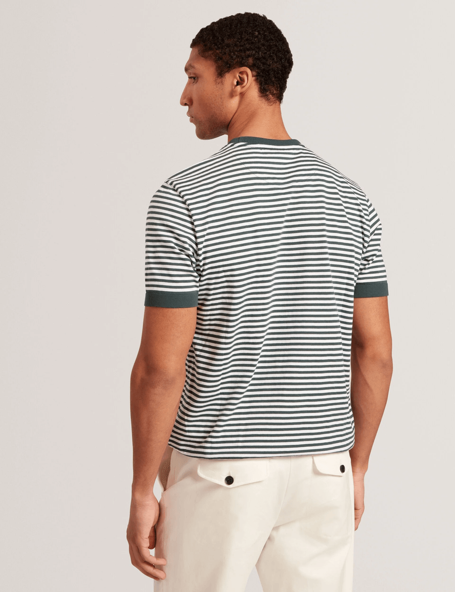 Elevate your casual wardrobe with the Ted Baker OURME | DK-GREEN short sleeve t-shirt. This stylish piece features a contemporary horizontal stripe pattern, perfect for those seeking a blend of comfort and sophistication. Made from 100% lightweight cotton, it ensures breathability and soft feel against the skin.