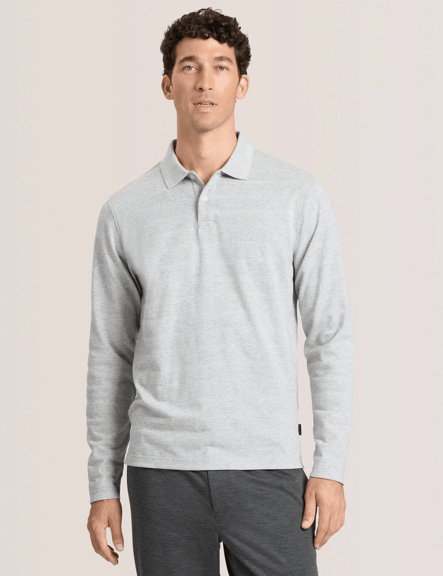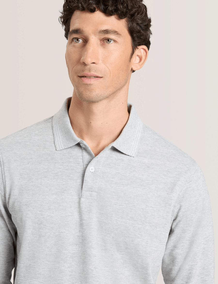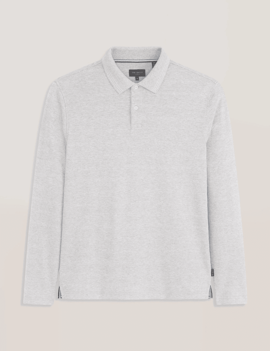 Elevate Your Style with the Ted Baker POPCORN STRIPE LONG SLEEVE POLO | GREY HEATHER