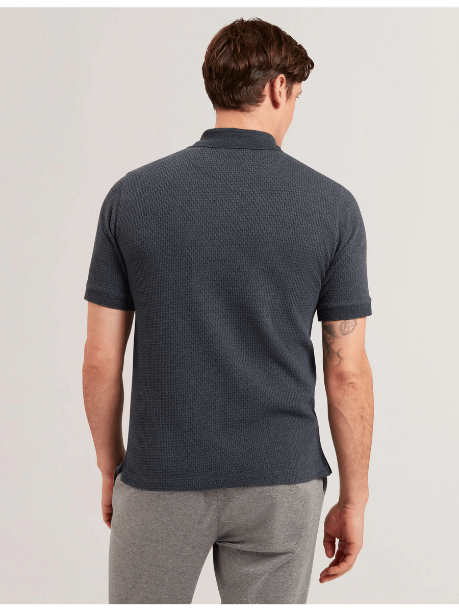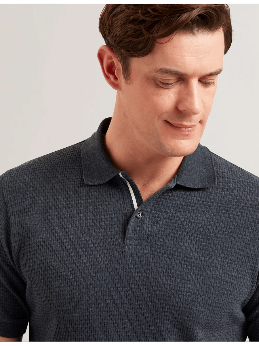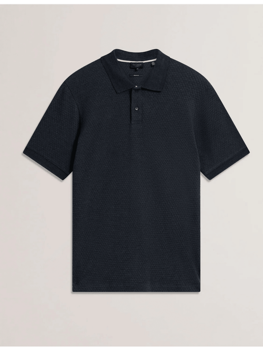 The Ted Baker REDMAN | NAVY is designed for versatility and style. Crafted from high-quality pure cotton, this polo offers breathability and comfort, making it ideal for warm weather or layered looks. The eye-catching zig-zag texture not only sets it apart but also adds a contemporary touch to your everyday attire.