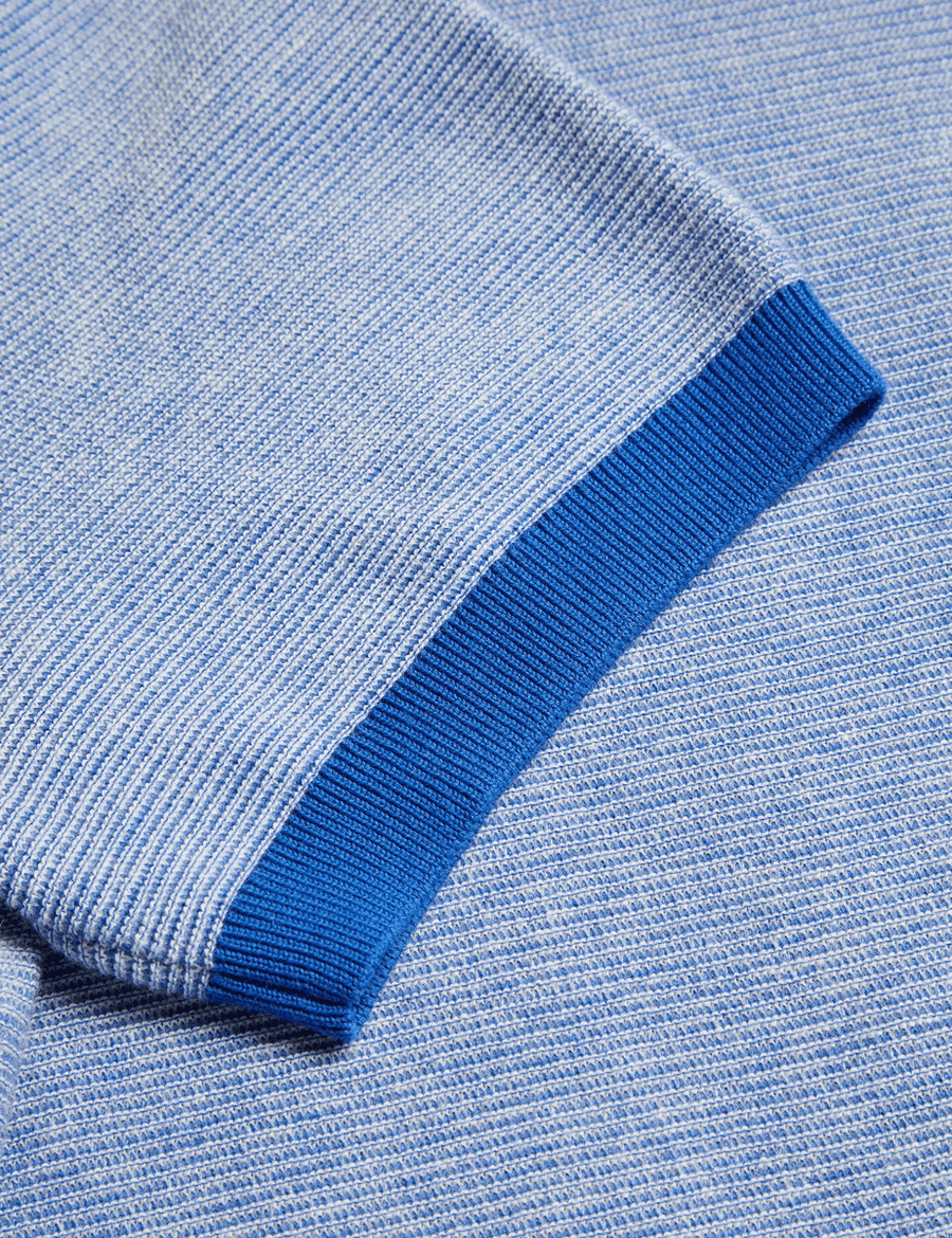 The Ted Baker WULDER | SKY-BLUE polo shirt features a refined knitted design that sets it apart from ordinary polos. The premium cotton blend ensures a soft feel against the skin, making it perfect for both casual outings and more formal occasions. With its open neck and classic collar, this shirt offers a relaxed yet polished appearance that fits seamlessly into any wardrobe.