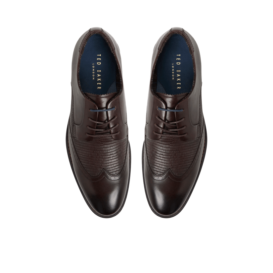 Step into sophistication with the Ted Baker HACKNEY | DK-BROWN, a lace-up shoe that effortlessly blends classic style with modern design. Crafted from premium polished leather, this shoe features a textured vamp and subtle brogue detailing, making it a standout choice for any occasion.