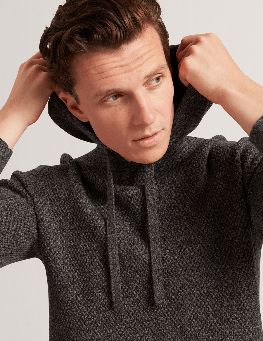 Discover the ultimate blend of style and comfort with the Ted Baker BANSTED | MID-GREY hooded jumper. Crafted from a luxurious wool cotton blend, this piece is designed to keep you warm while ensuring you look effortlessly chic.