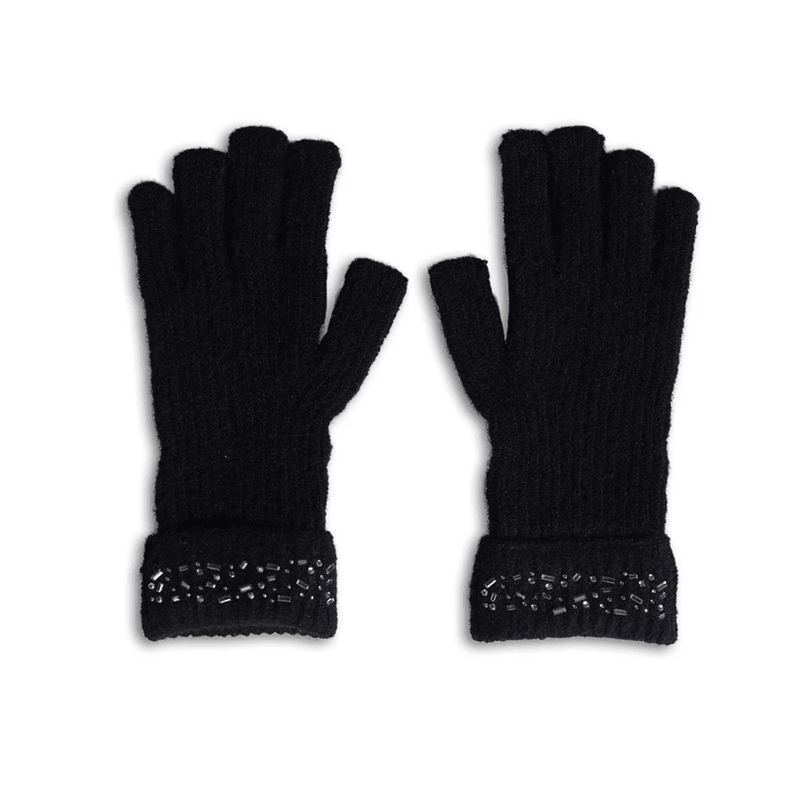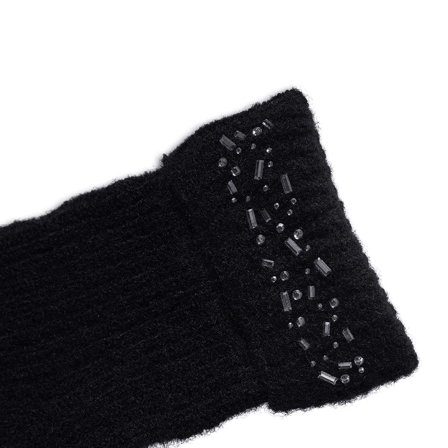 The Ted Baker LONDON BRIDGE | BLACK set includes a stylish ribbed knit beanie and matching gloves. Whether you're heading out for a casual day or braving the cold, this set is designed to keep you cozy while elevating your look. The eye-catching crystal embellishments and chic faux fur pom-pom make this set not just practical but also a statement piece.