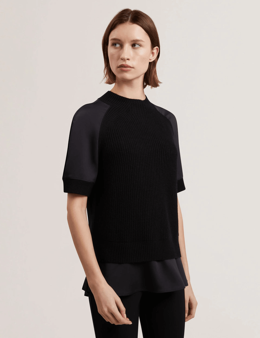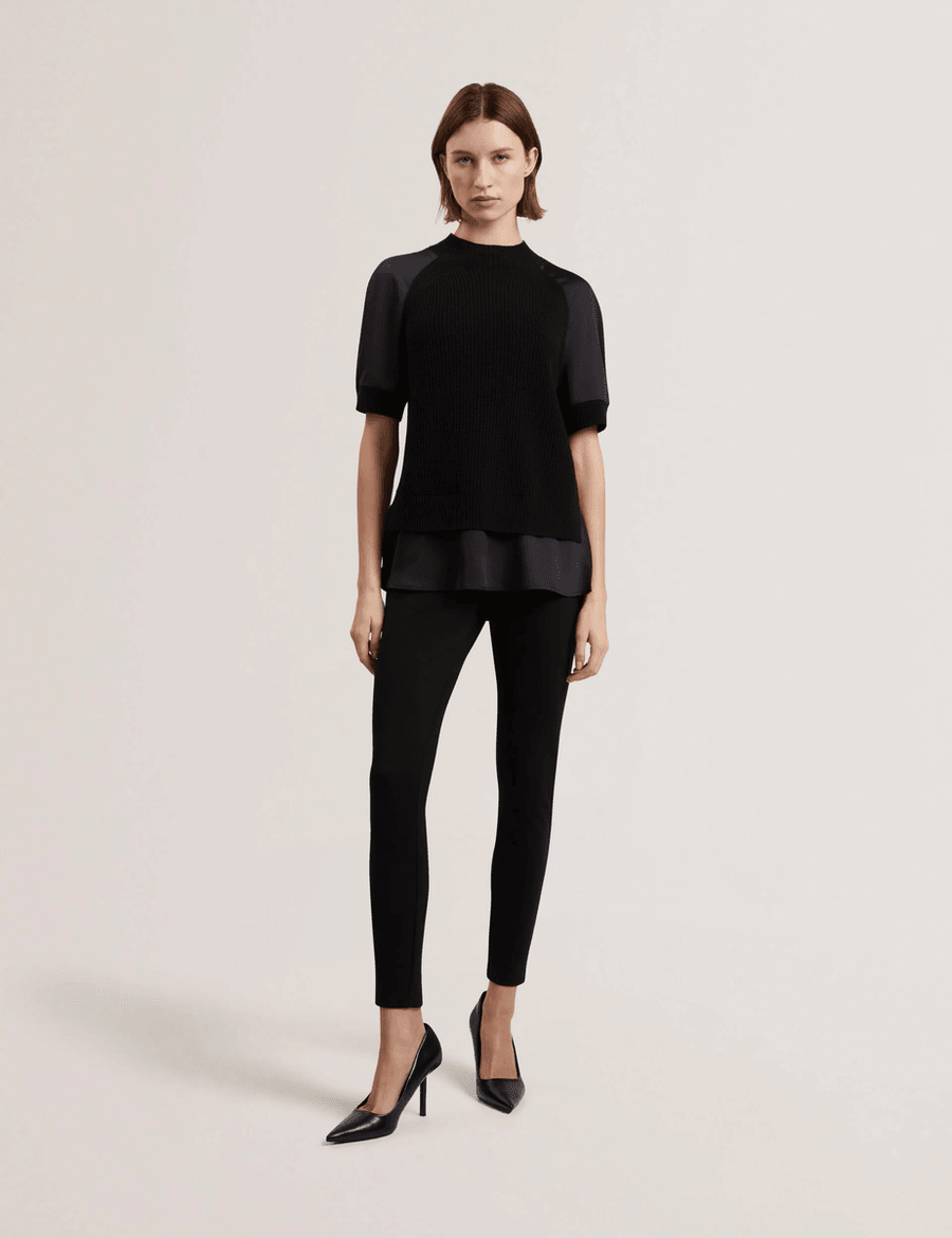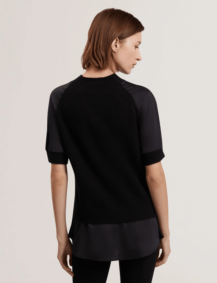 The Ted Baker ONZAA | BLACK is designed for the contemporary woman who values both elegance and ease. With a chic, layered look, this top is perfect for transitioning from day to night. The meticulous attention to detail, evident in the woven elements and ribbed trims, makes this piece stand out.