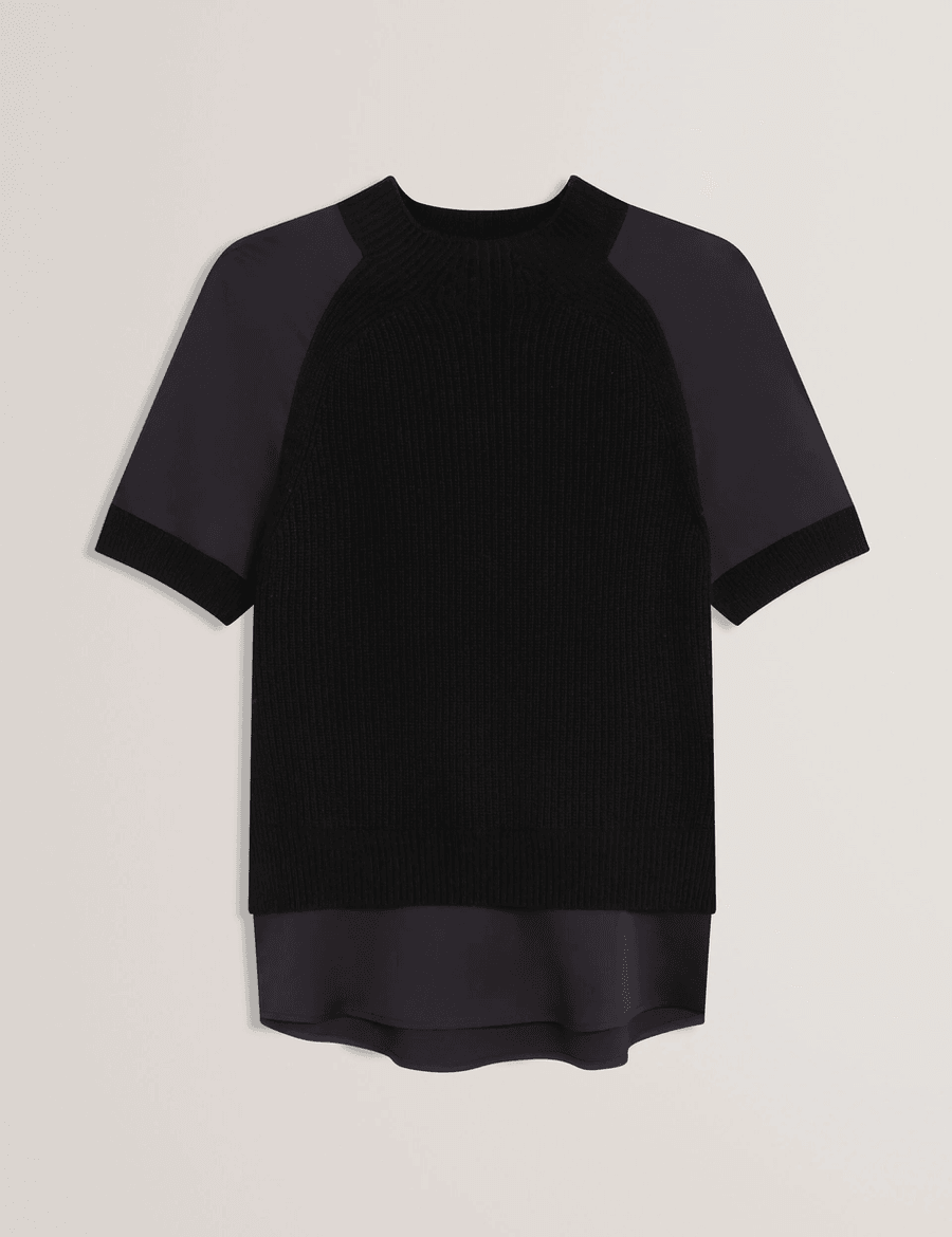 Discover the perfect blend of style and comfort with the Ted Baker ONZAA | BLACK. This stunning top features a layered style with a chunky knitted bodice, crafted from a luxurious wool-cashmere blend. Its longline shirt design offers a sophisticated silhouette, making it an essential addition to your fashion collection.