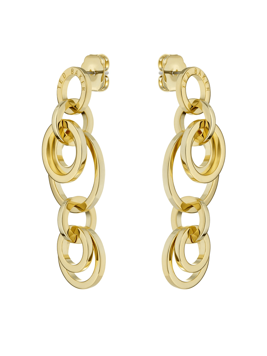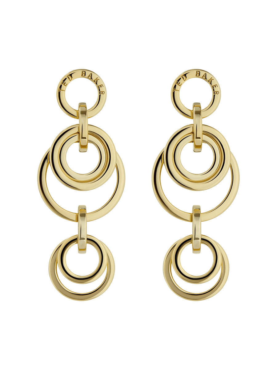 Elevate your accessory collection with the stunning Ted Baker HULIET | GOLD drop earrings. These exquisite earrings feature an interlocking design of slim gold-tone hoops, creating a captivating movement that draws attention. Perfect for any occasion, they are the ultimate way to make a bold statement.