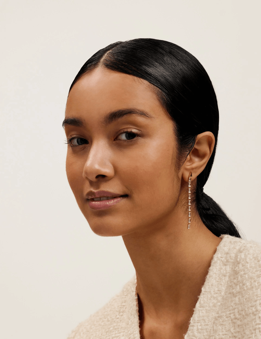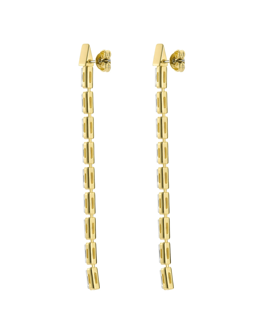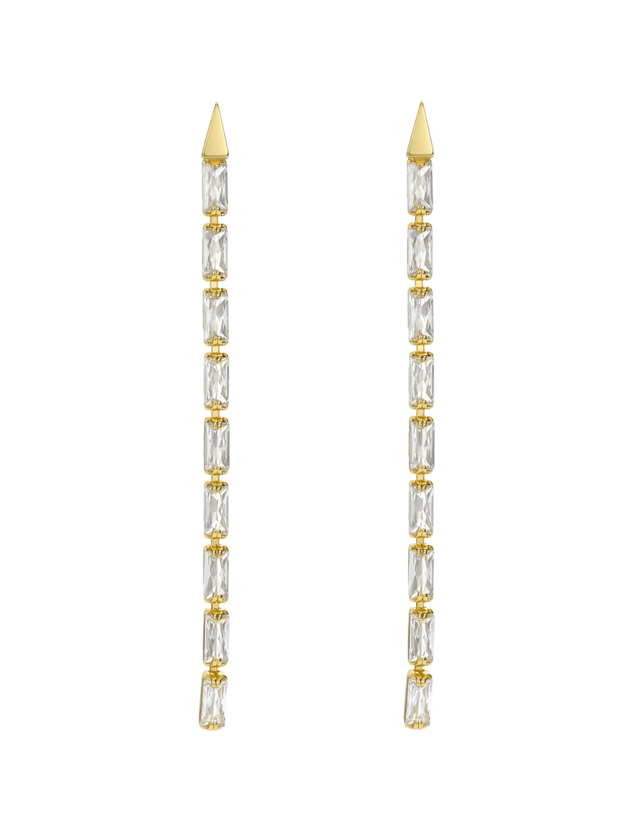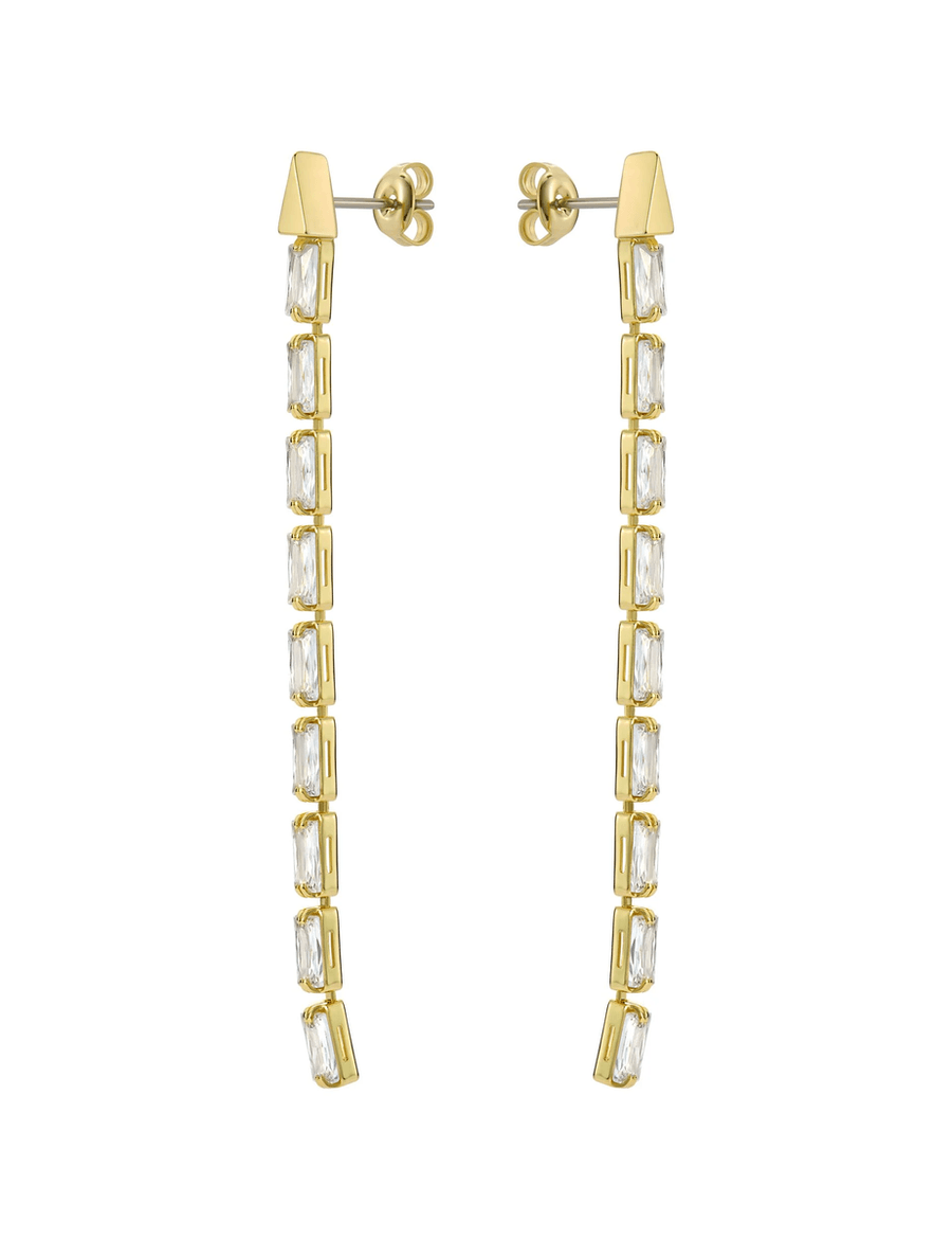 - Elegant Design: Slinky drop design with vertical baguette crystals.