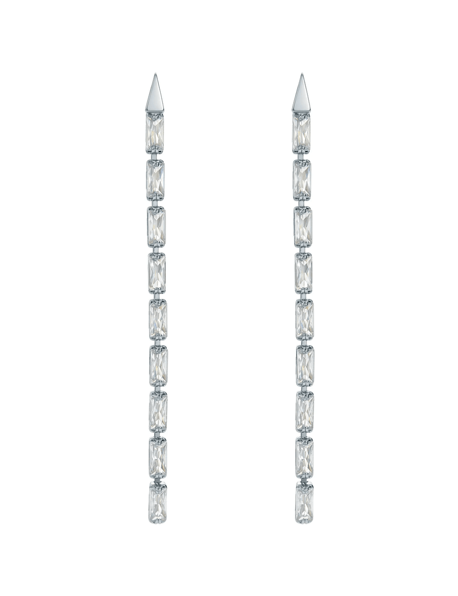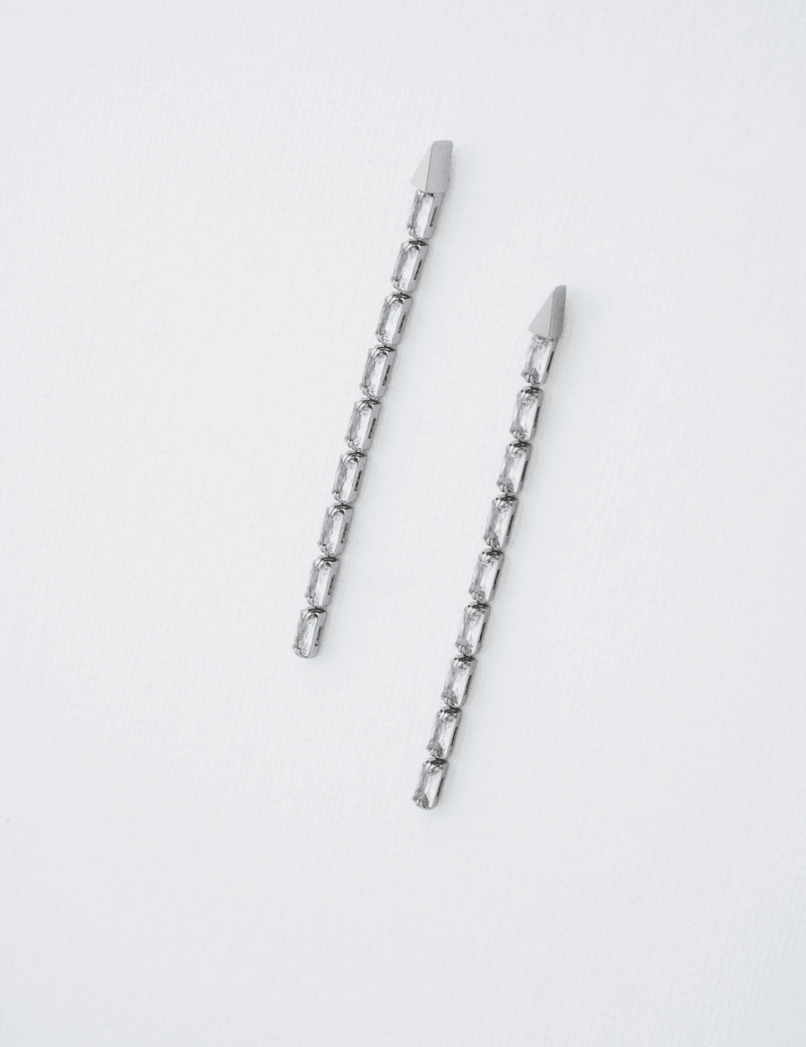 Looking for the perfect accessory to elevate your outfit? The Ted Baker ISALIE | SILVER earrings are your go-to choice for adding a touch of glamour. With a stunning row of clear European crystals arranged in a chic baguette style, these earrings are designed to make a statement.