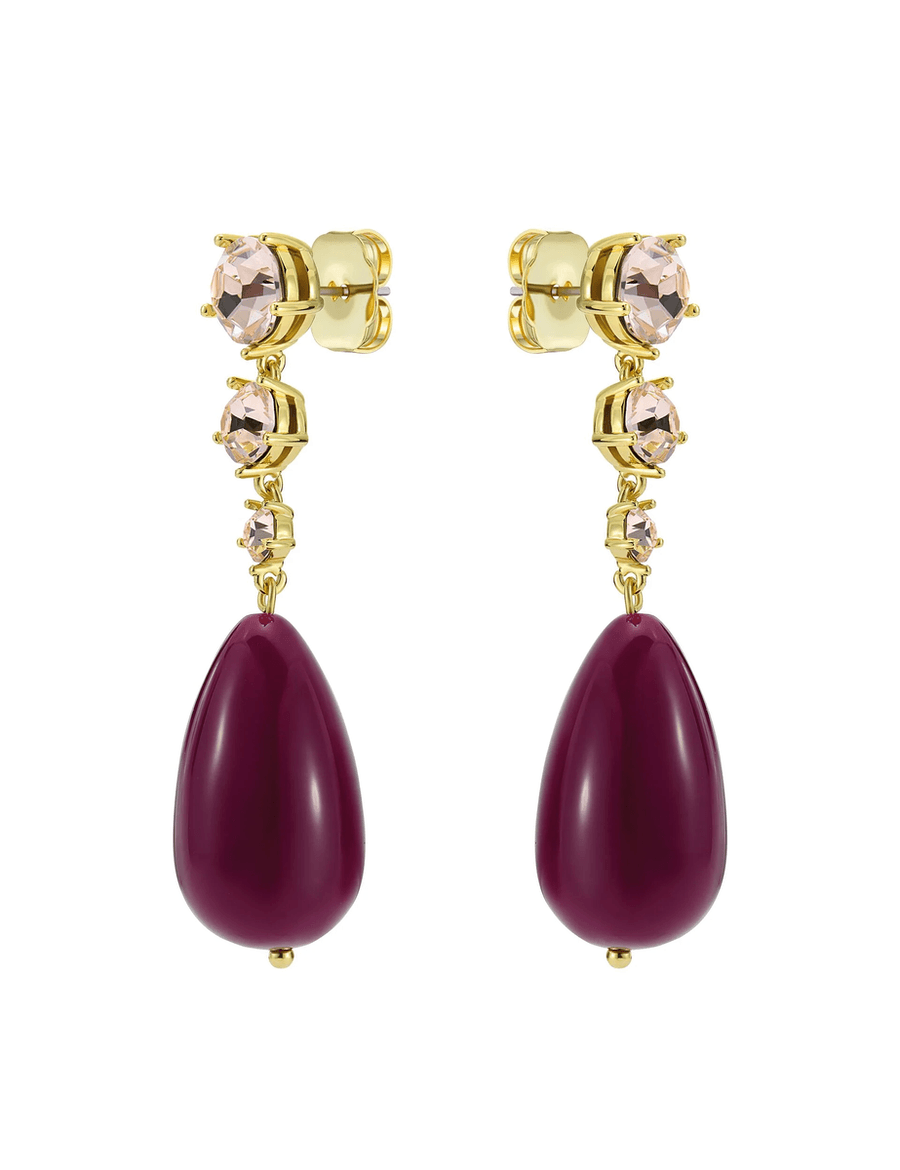 The Ted Baker PEARSTI | GOLD PLUM earrings are more than just accessories; they are a statement of style and elegance. The rich plum teardrop design brings a touch of sophistication, while the pink crystal stones add a glamorous sparkle. Whether you're dressing up for a special occasion or adding flair to your everyday outfit, these earrings are the perfect choice.