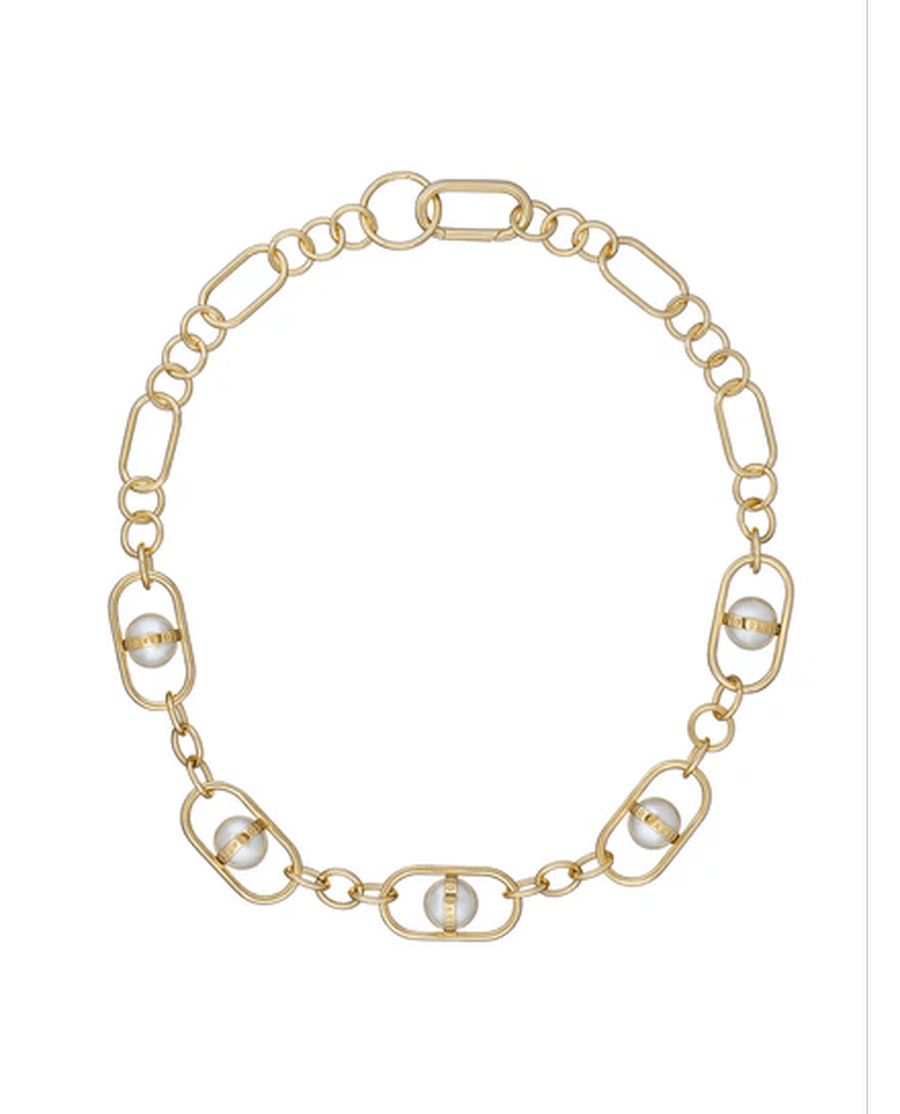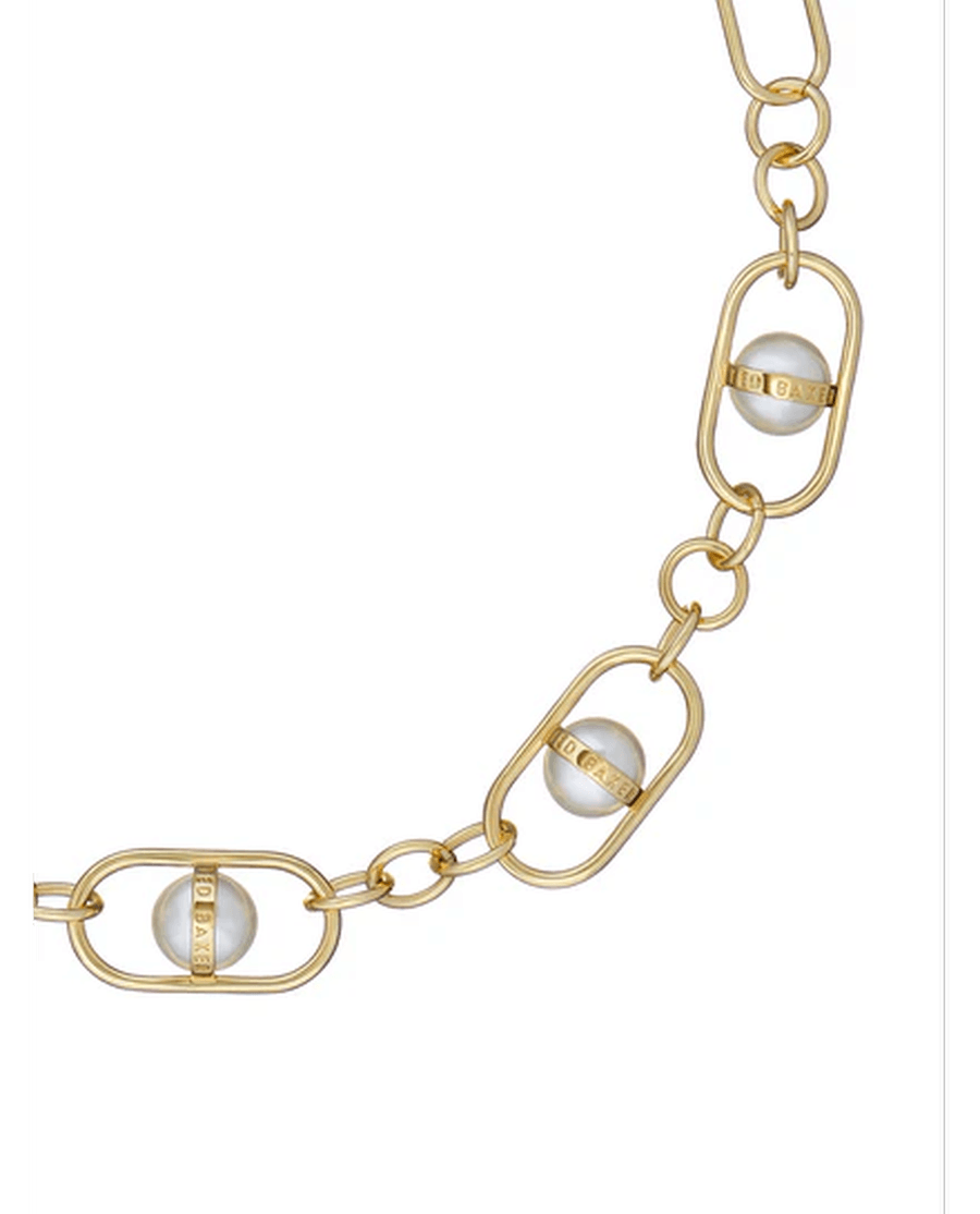 Discover the stunning Ted Baker PERRIET | GOLD, a modern twist on timeless elegance. This exquisite statement necklace features oversized faux pearls beautifully complemented by chunky gold-tone chain links, designed to captivate attention and elevate any outfit.