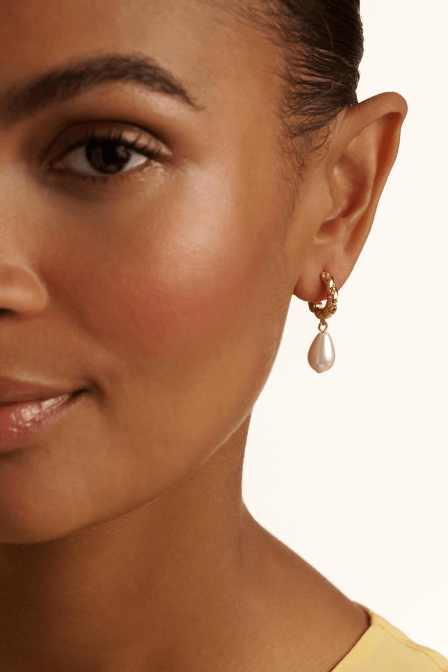 Discover the timeless beauty of the Ted Baker TILLY | GOLD earrings, where classic elegance meets a contemporary flair. With a stunning teardrop faux pearl pendant gracefully suspended from a uniquely twisted gold-tone hoop, these earrings are the perfect accessory for any occasion.