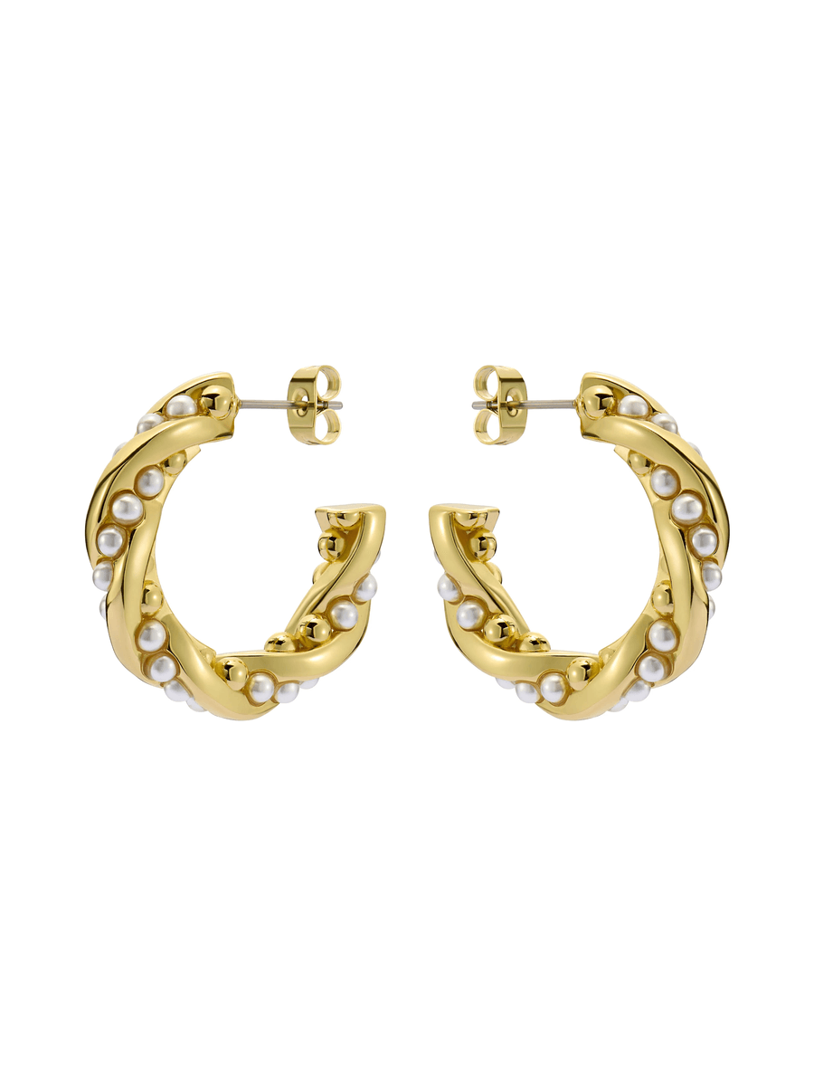 The Ted Baker TIYAA | GOLD earrings are designed to make you stand out. Their chunky twisted silhouette brings a modern twist to classic hoop earrings. Adorned with delicate faux pearl beads, these earrings are perfect for any occasion, whether you're heading to work or out for a night on the town.