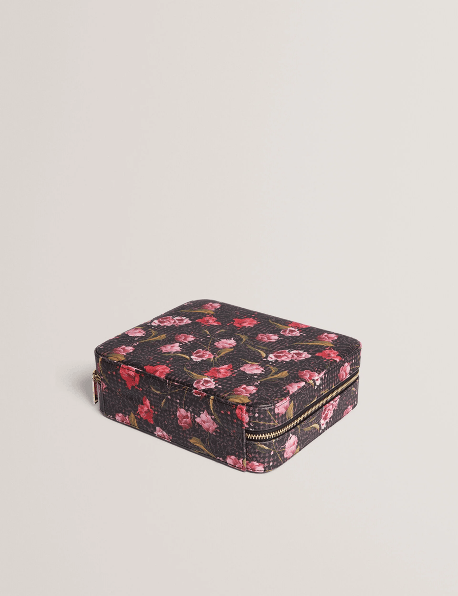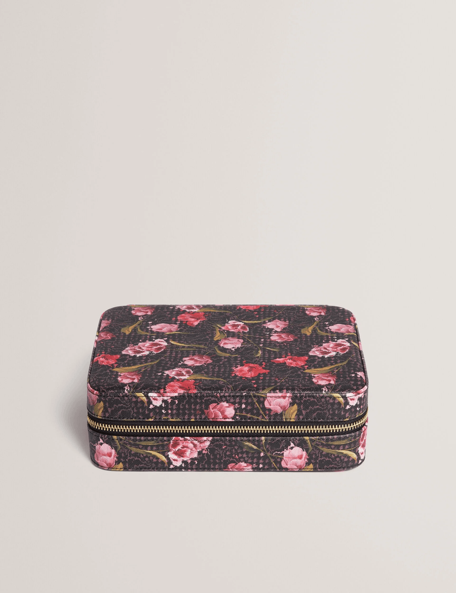 Transform the way you store your jewelry with the Ted Baker TULBERY | BLACK case. This stylish accessory features a chic floral check print on durable PU leather, making it the perfect blend of elegance and functionality.