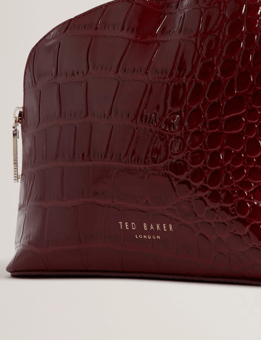 Elevate your accessory game with the Ted Baker VALMMA | WINE makeup bag, a perfect blend of style and functionality. This chic makeup bag features a stunning croc effect texture that adds a touch of elegance to your beauty routine.