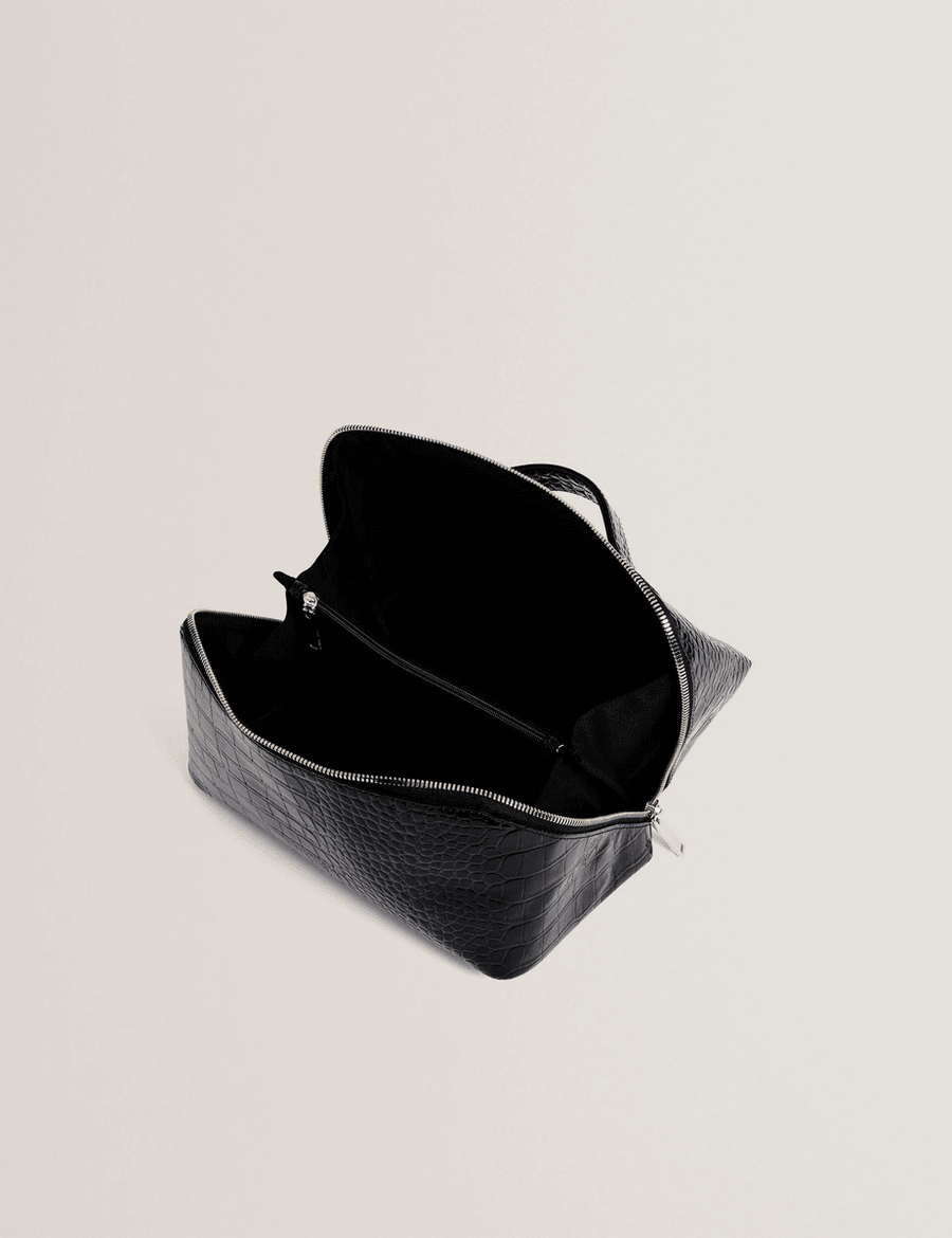 Discover the perfect blend of style and functionality with the Ted Baker VIEDA | BLACK zip-around makeup bag. Crafted from luxurious croc patent PU leather, this chic accessory is designed to elevate your beauty routine.