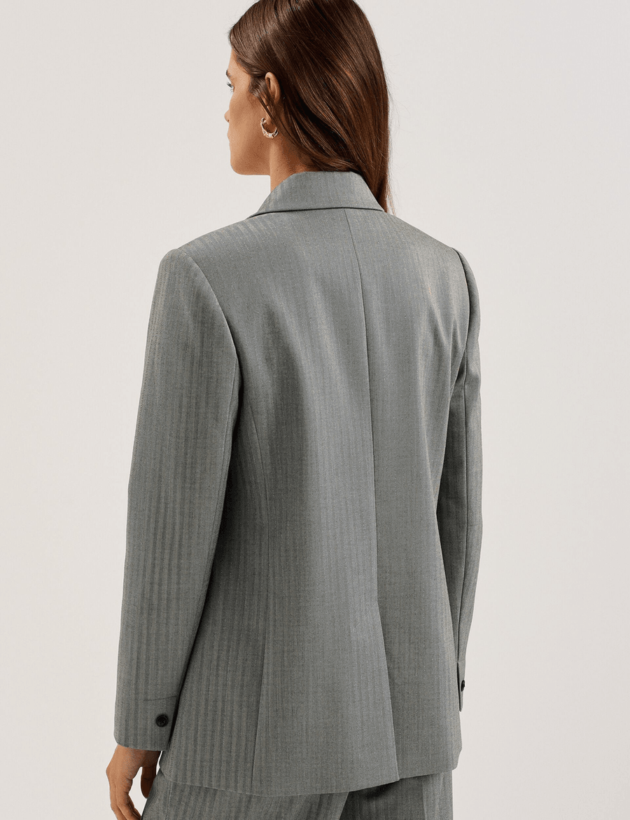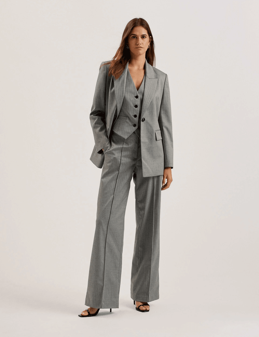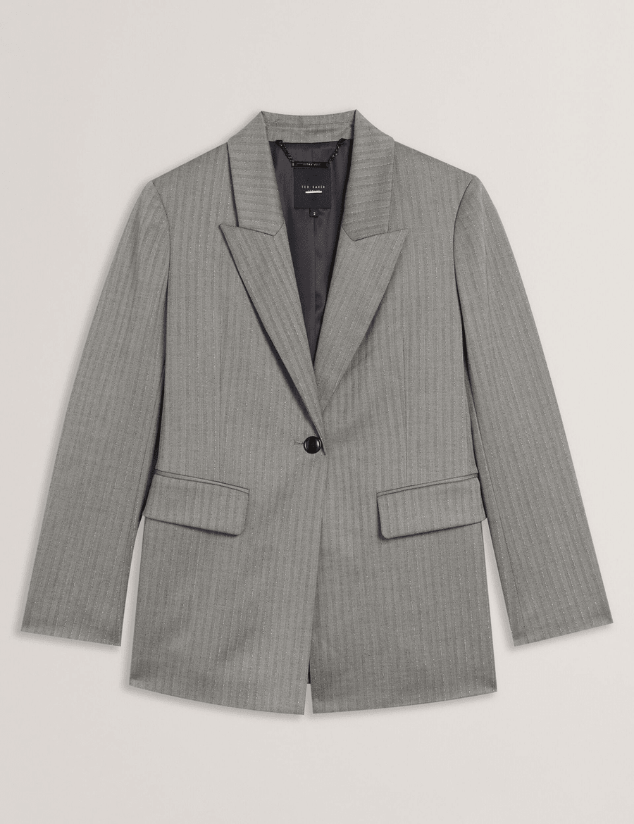 Discover the perfect blend of style and sophistication with the Ted Baker KOA blazer in a chic dark grey hue. This oversized fit tailored blazer is designed to make a bold statement while offering unparalleled comfort. Whether you're dressing up for a business meeting or a night out, this piece is your go-to choice.