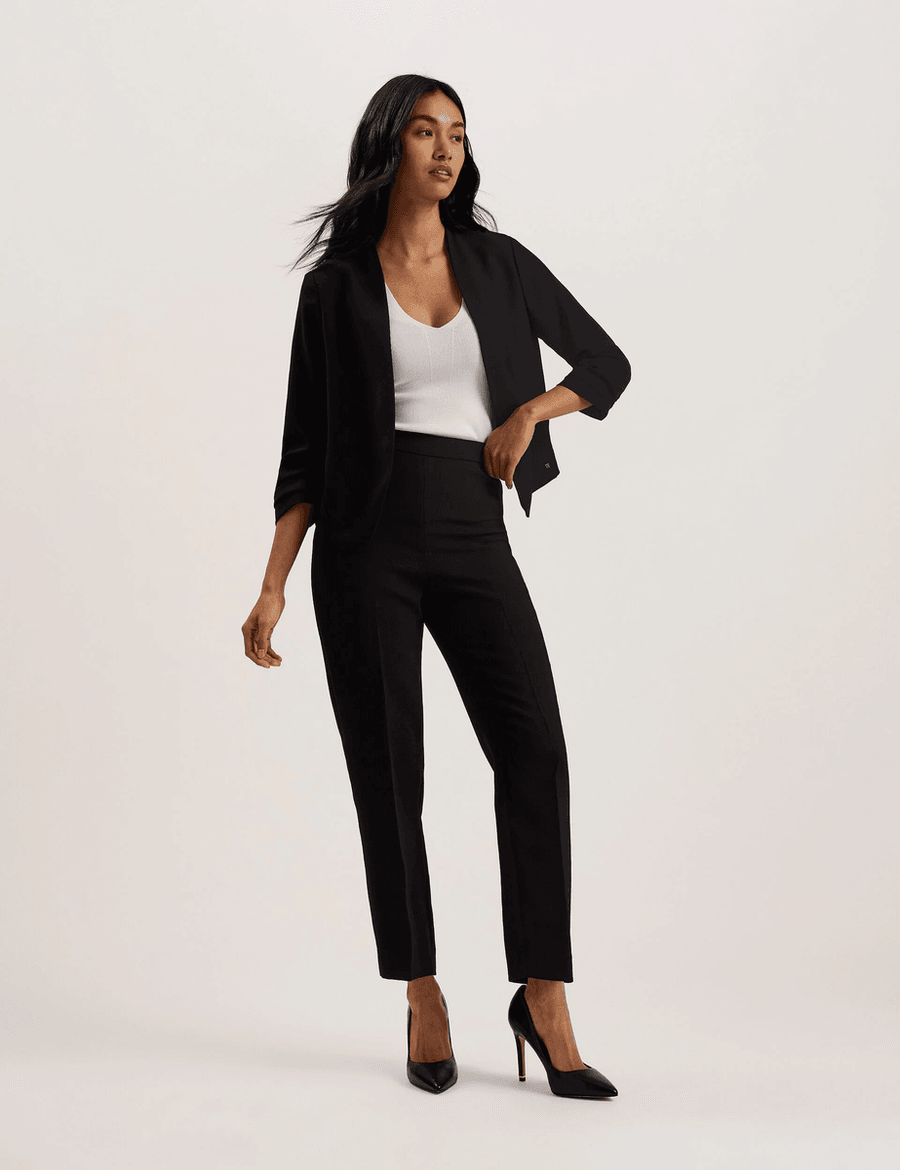 Discover the stunning Ted Baker POPSY | BLACK, a tailored jacket that perfectly blends sophistication and style. Designed with a cropped length and an open front, this jacket is ideal for adding a touch of elegance to any outfit.
