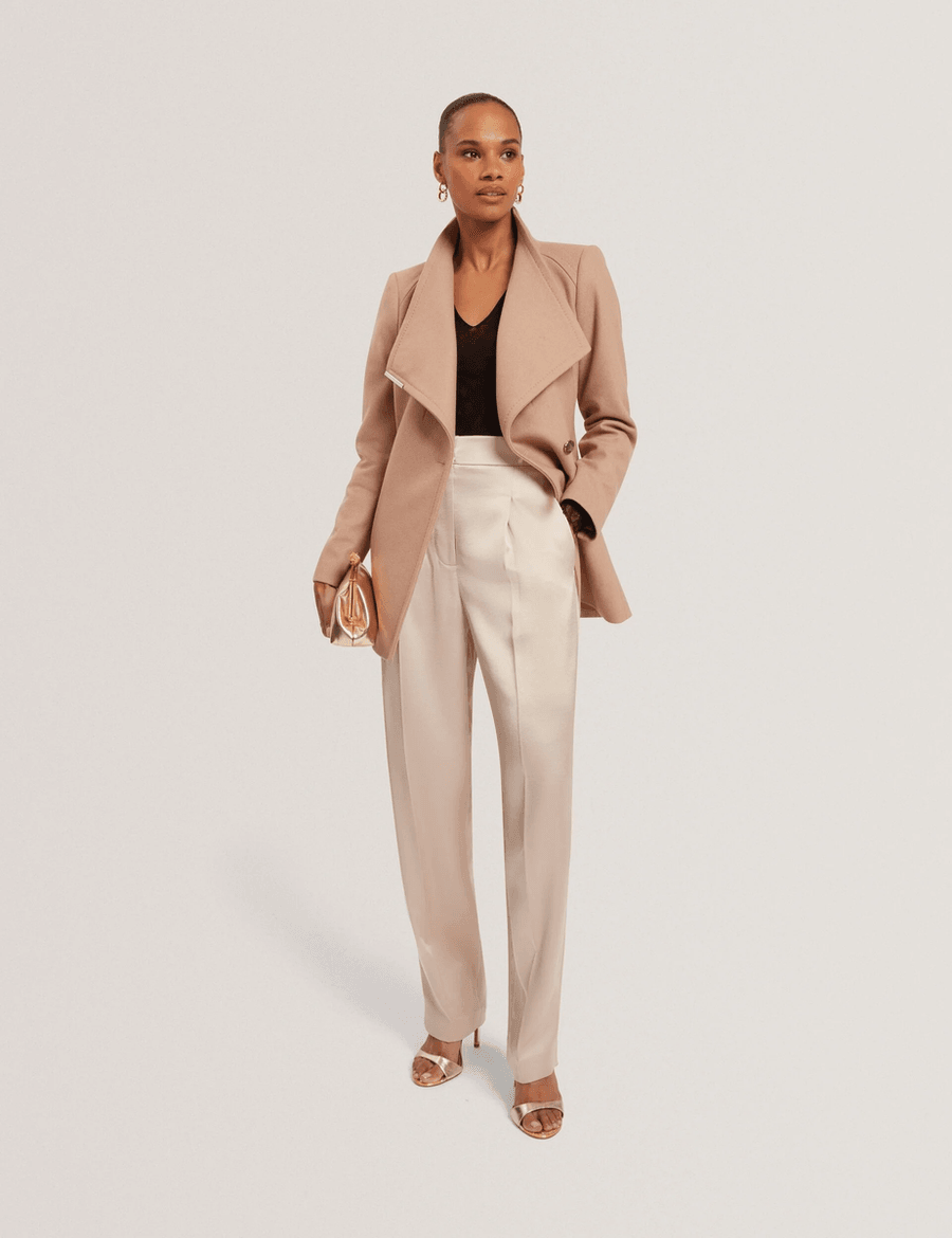 Discover the perfect blend of style and comfort with the Ted Baker ROSESS | CAMEL. This stunning short coat features a wrap front design, making it an essential addition to your wardrobe for any occasion. Crafted from a luxurious wool-cashmere blend, it provides warmth without sacrificing elegance.