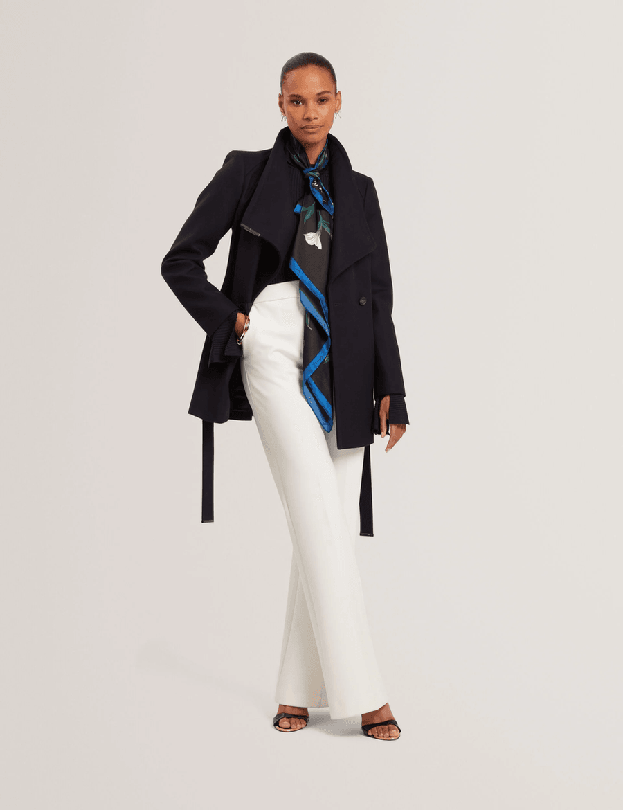 Introducing the Ted Baker ROSESS in Navy, the perfect blend of style and sophistication. This timeless outerwear piece is designed for those who appreciate a classic silhouette with a modern twist.